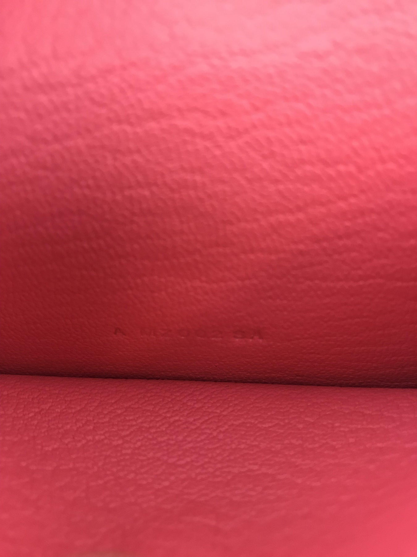 Condition: Excellent. The exterior leather is perfect with absolutely no visible wear. The palladium 'H' has small surface scratches. The interior is immaculate with one small marking where the inside coin pouch button rubs the leather.