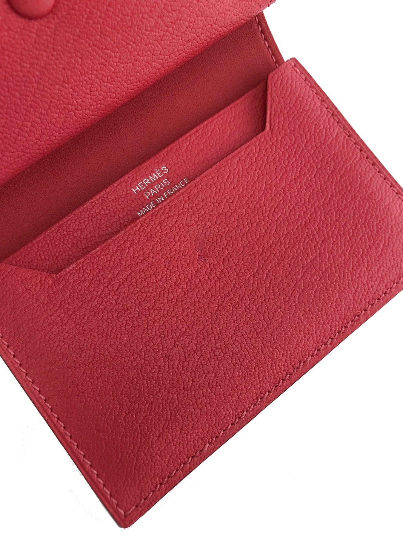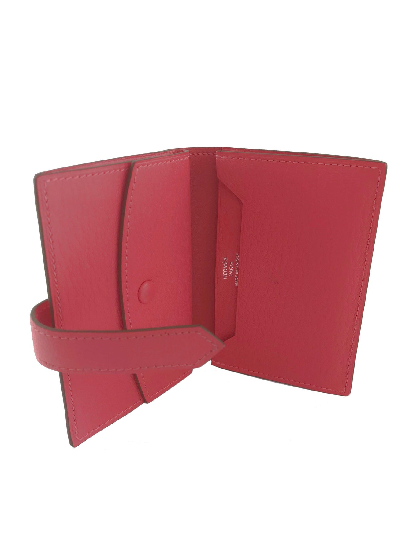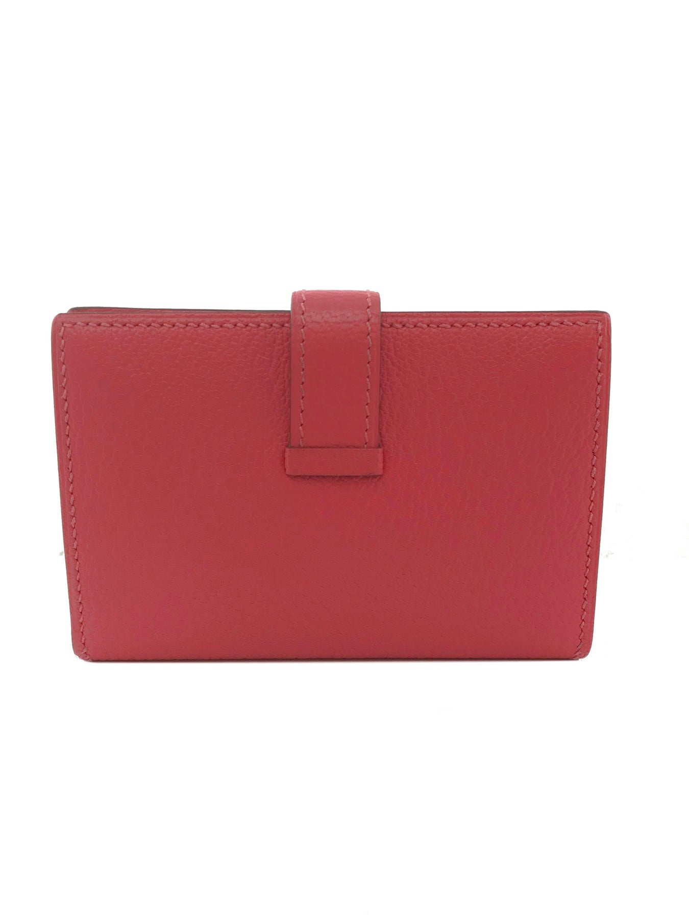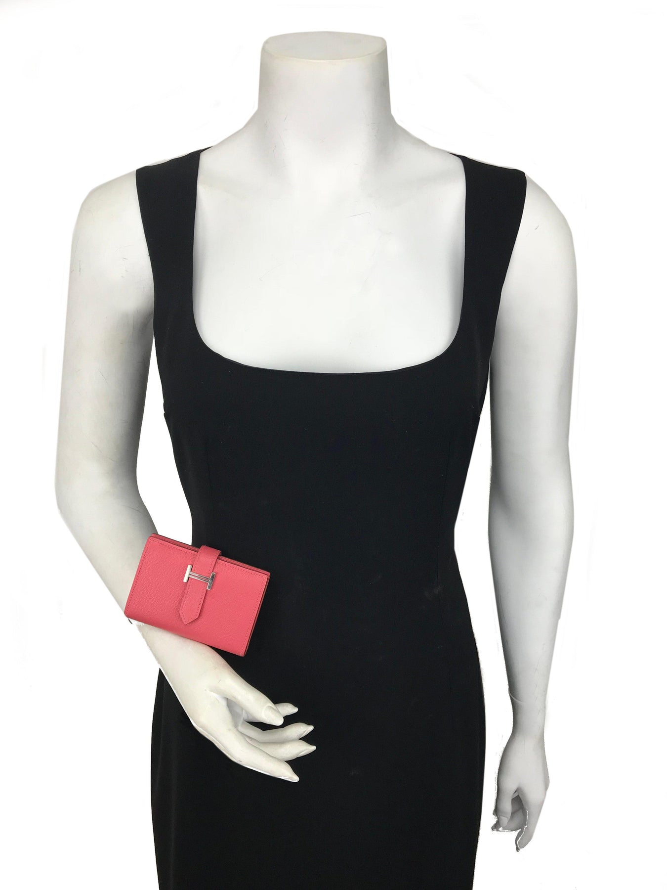 Add to your collection this Hermes Chevre Mini Compact Bearn Card Holder Wallet crafted from rose jaipur goatskin leather with a signature 'H' strap closure. Shop designer accessories by Hermes at Consigned Designs.