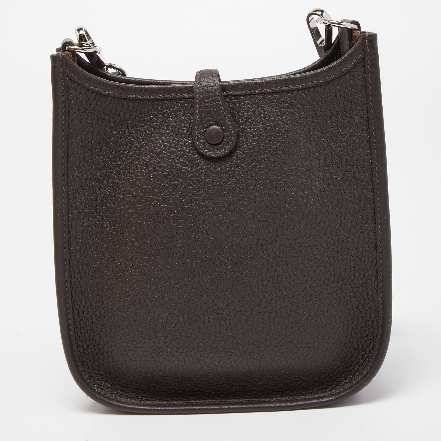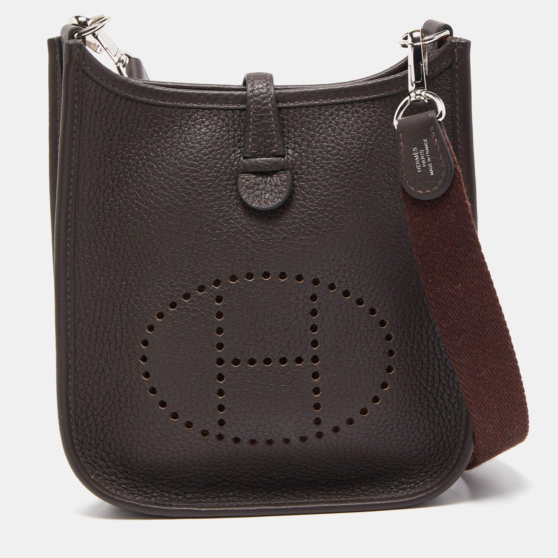HERMES Chocolat Clemence Leather Evelyne TPM Bag