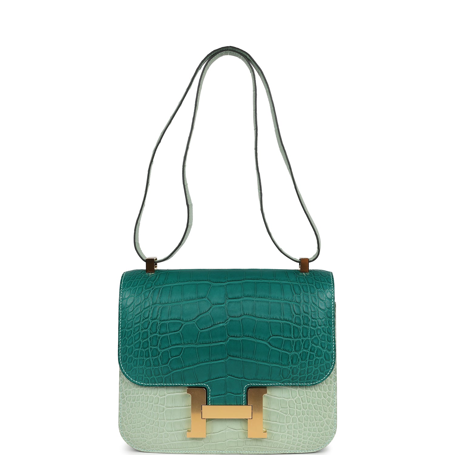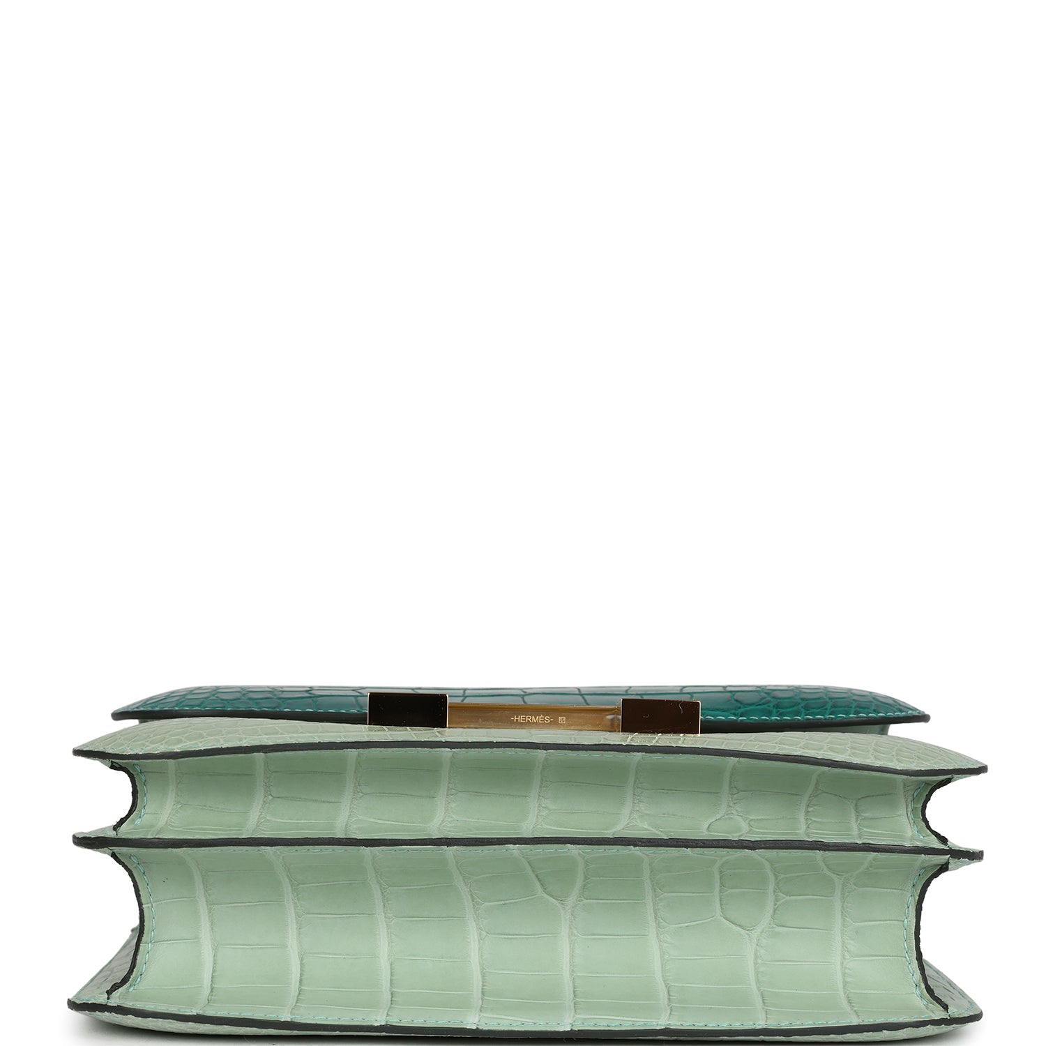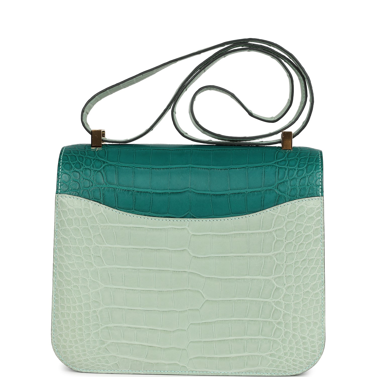 Hermes Constance 24 Bicolor Vert D'eau and Malachite Matte Alligator Gold Hardware