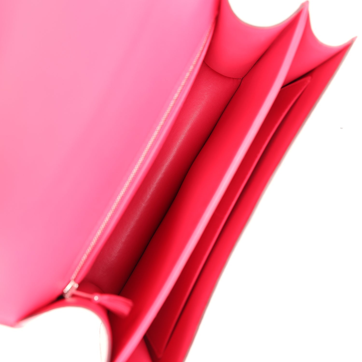 The interior is lined with Rose Extreme lambskin and has main compartment, one slip pocket on front wall, and one zip pocket on rear wall.