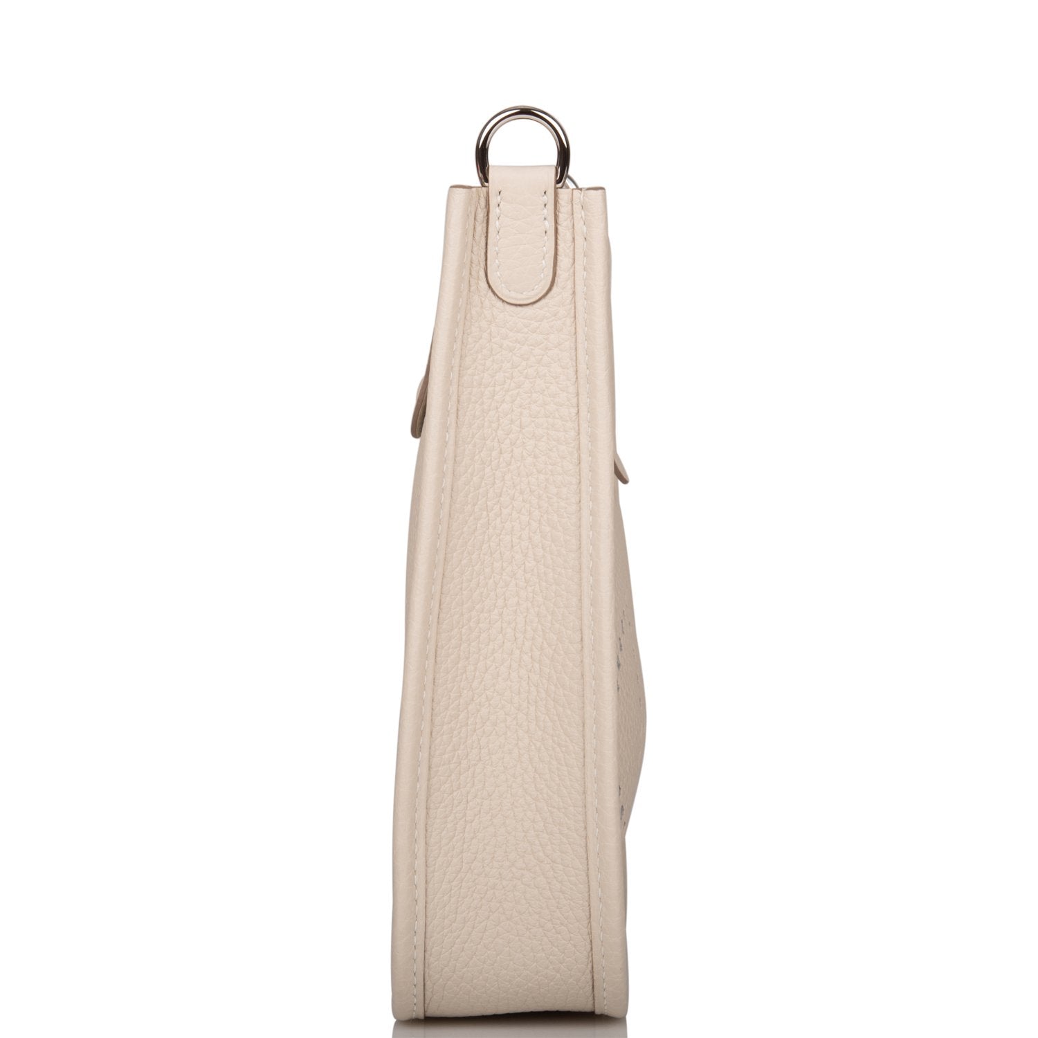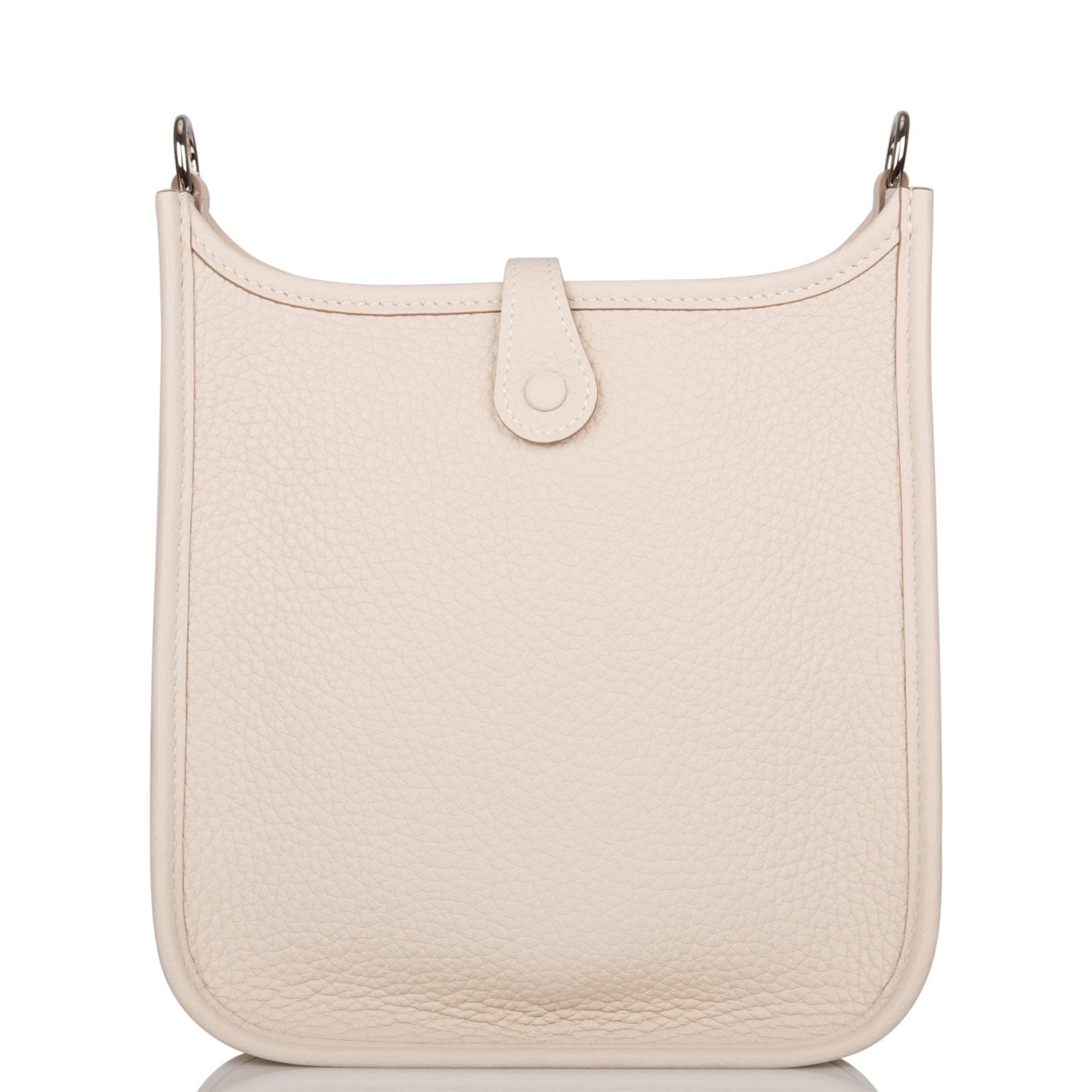 This Evelyne TPM is in Craie clemence leather with palladium hardware and features tonal stitching stitching, pull tab top closure and a Craie removable canvas and leather shoulder/crossbody strap.
