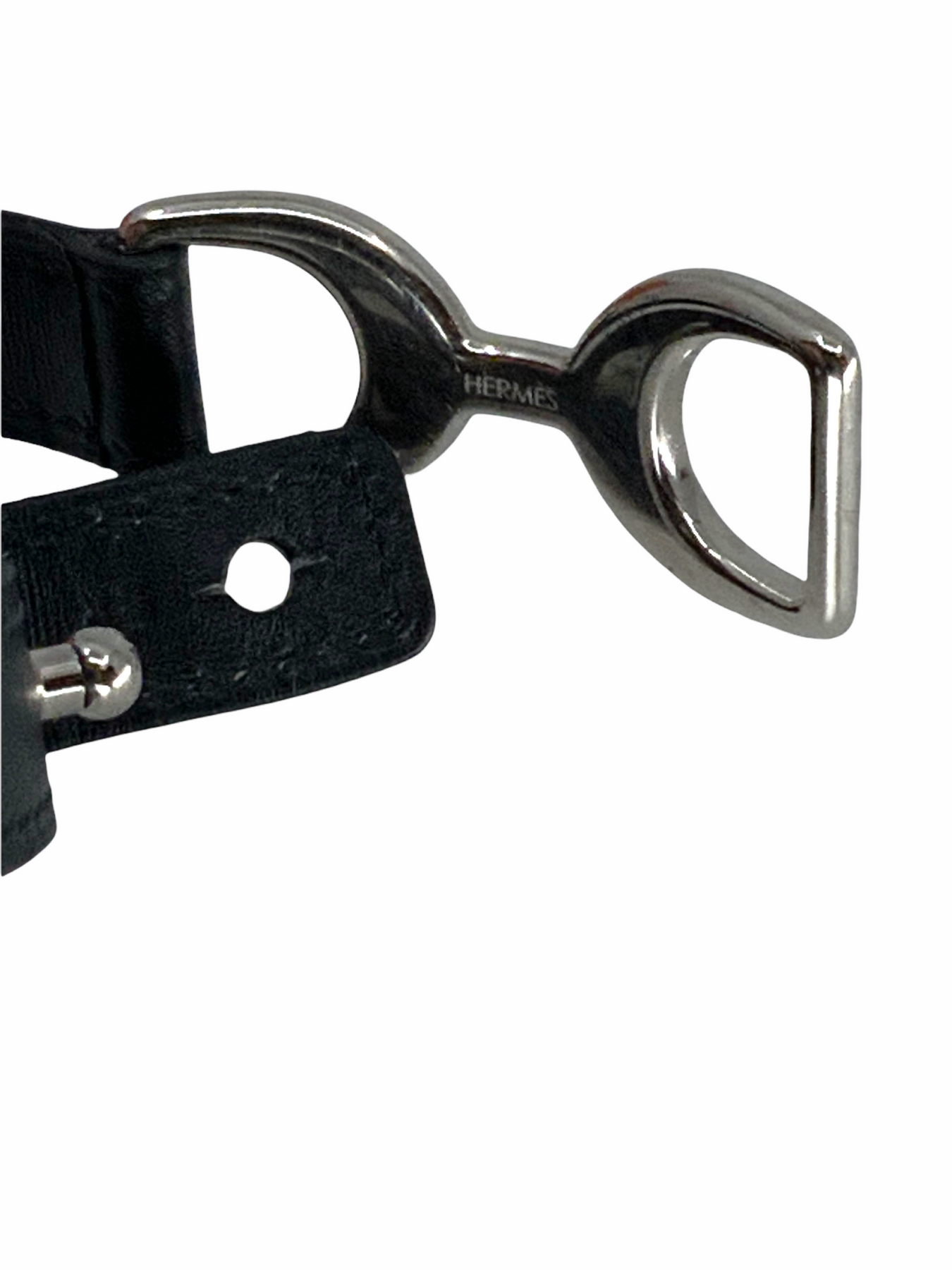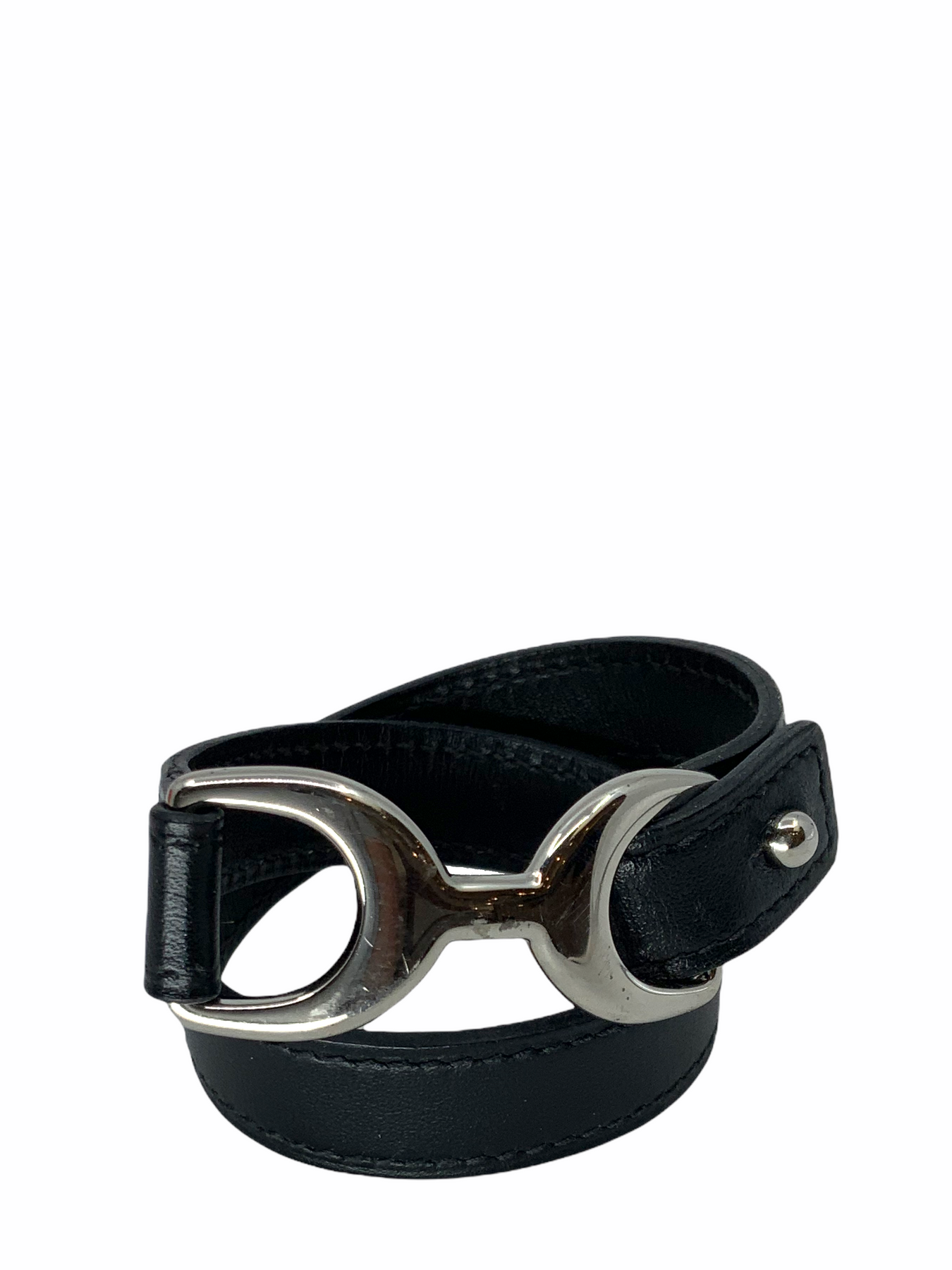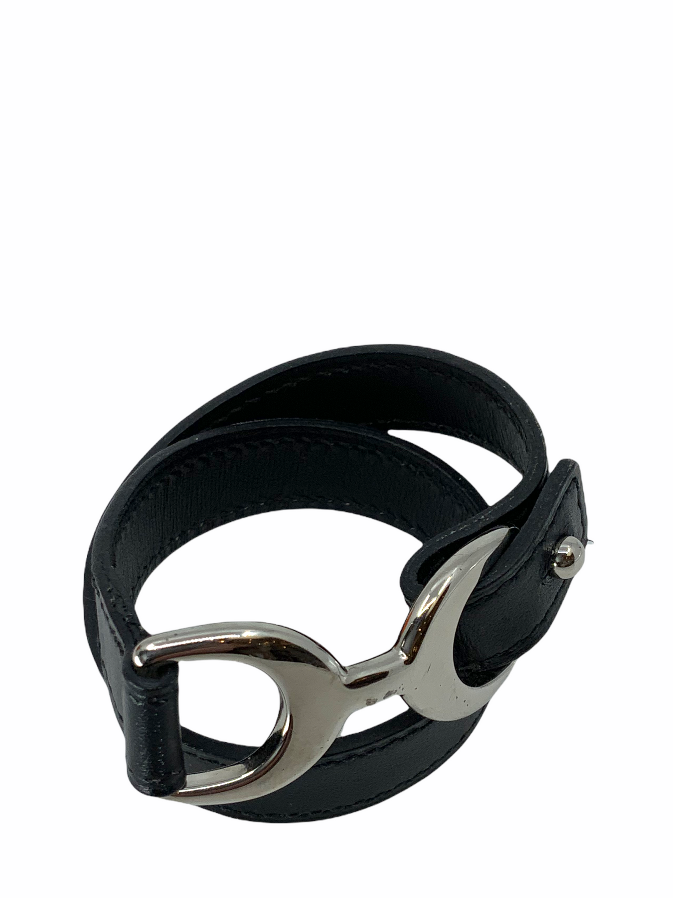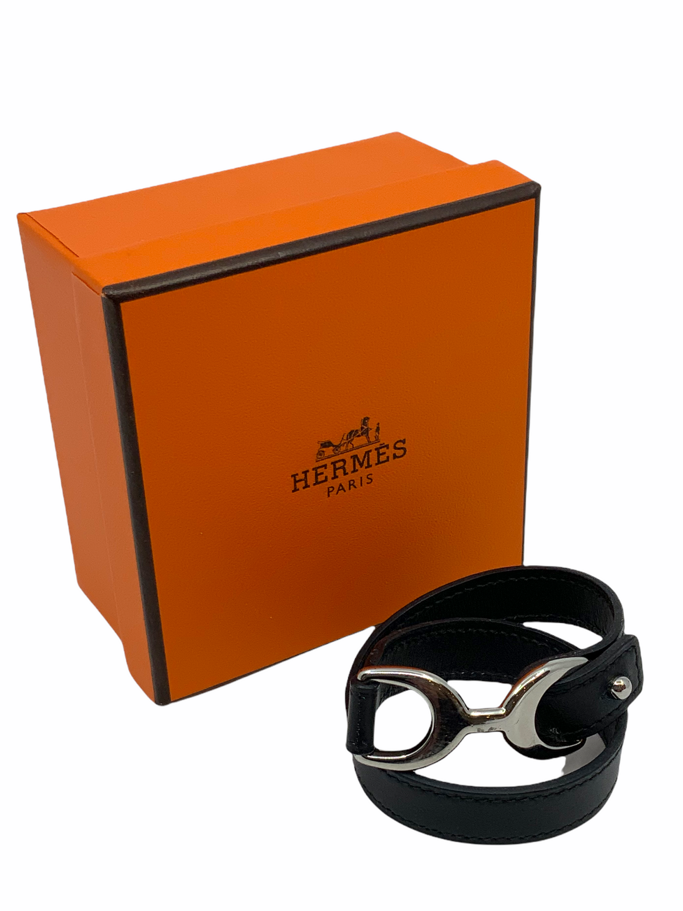 Prepare to turn heads with this Hermes Dandy Double Tour Wrap Bracelet XS  on your wrist! Beautifully crafted in supple and smooth black leather. Featuring a palladium plated horse-bit and a peg in hole closure.