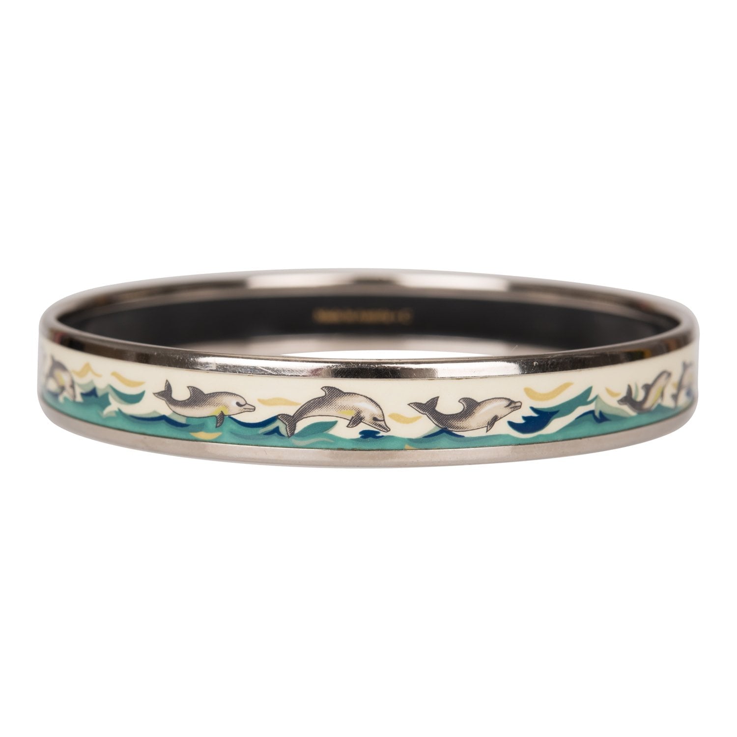 Hermes "Dolphins" Extra Narrow Printed Enamel Bracelet PM (65) ( - Excellent)