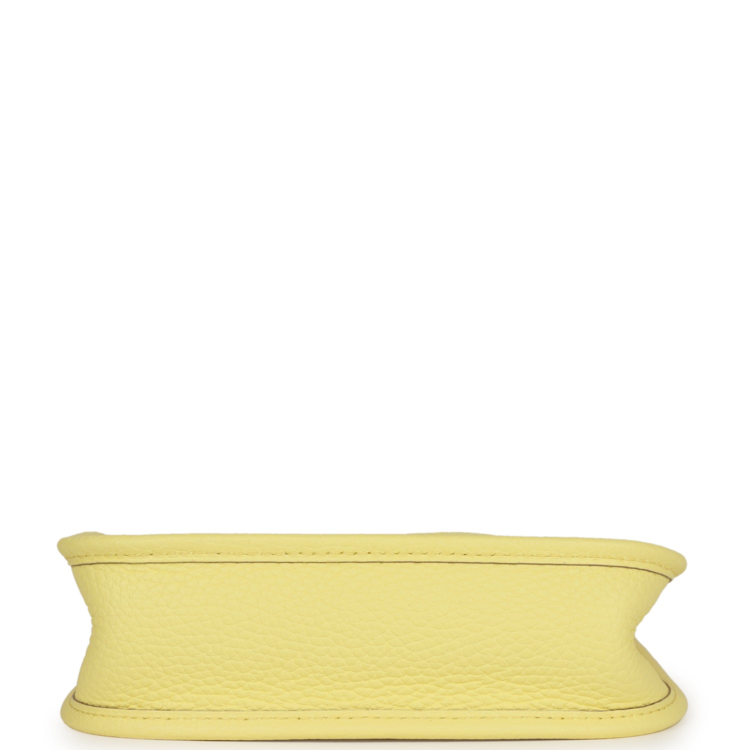 Evelyne TPM is in Limoncello clemence leather with palladium hardware and features tonal stitching stitching, pull tab top closure and a Limoncello removable canvas and leather shoulder/crossbody strap.