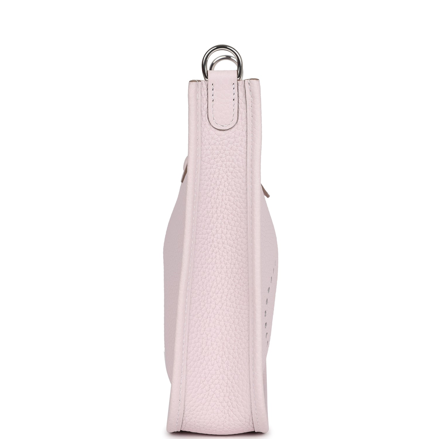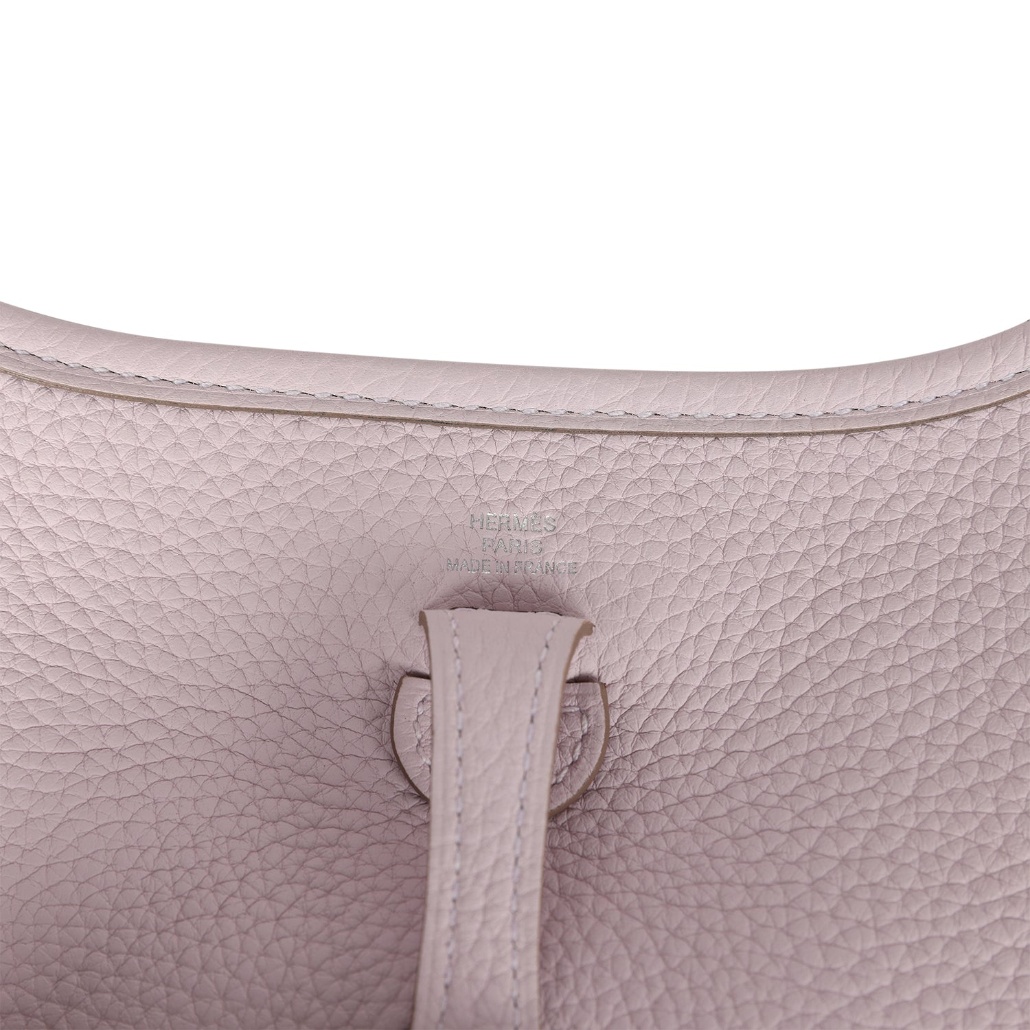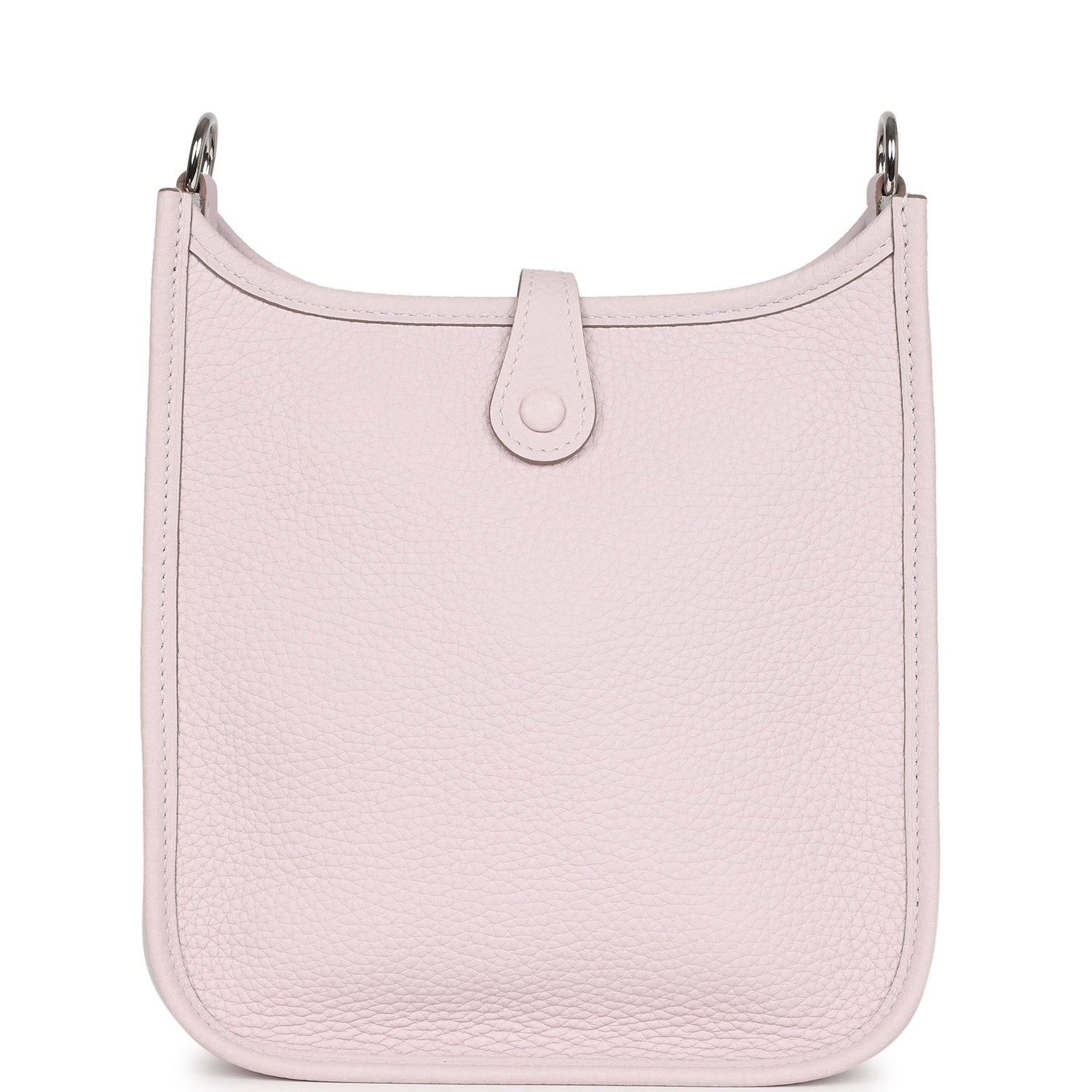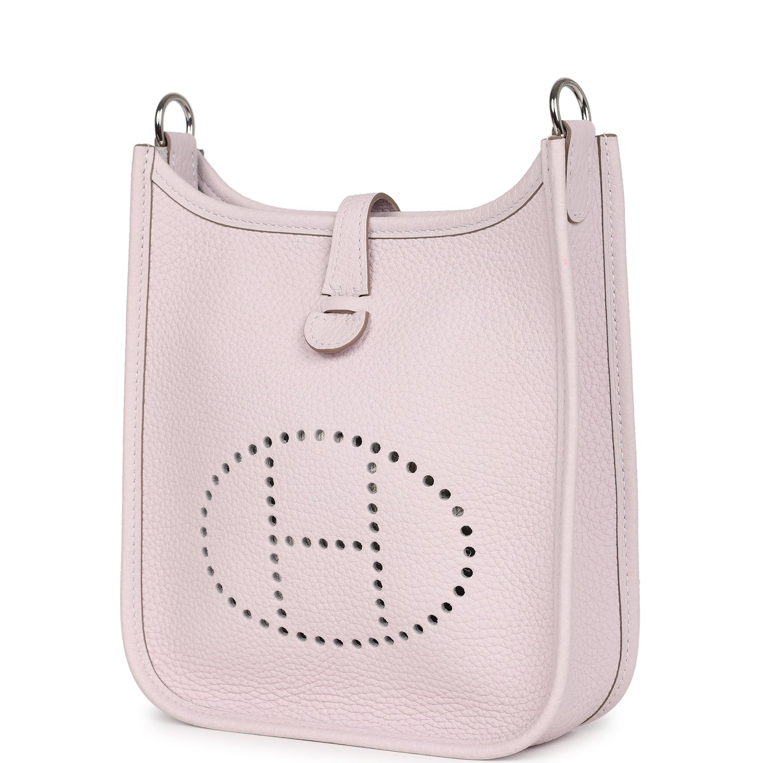 Evelyne TPM is in Mauve Pale clemence leather with palladium hardware and features tonal stitching stitching, pull tab top closure and a Mauve Pale removable canvas and leather shoulder/crossbody strap.