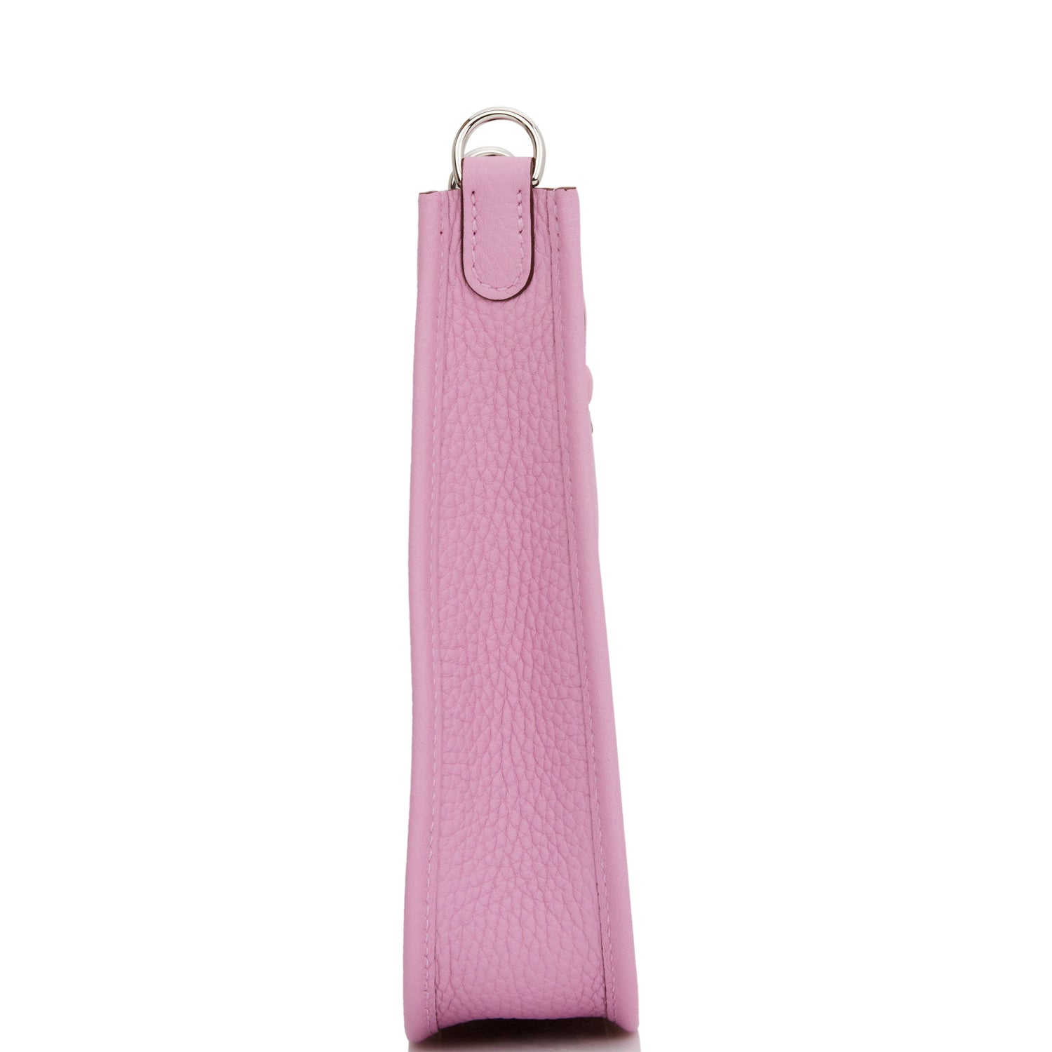 This Evelyne TPM is in Mauve Sylvestre clemence leather with palladium hardware and features tonal stitching stitching, pull tab top closure and a Craie removable canvas and leather shoulder/crossbody strap.