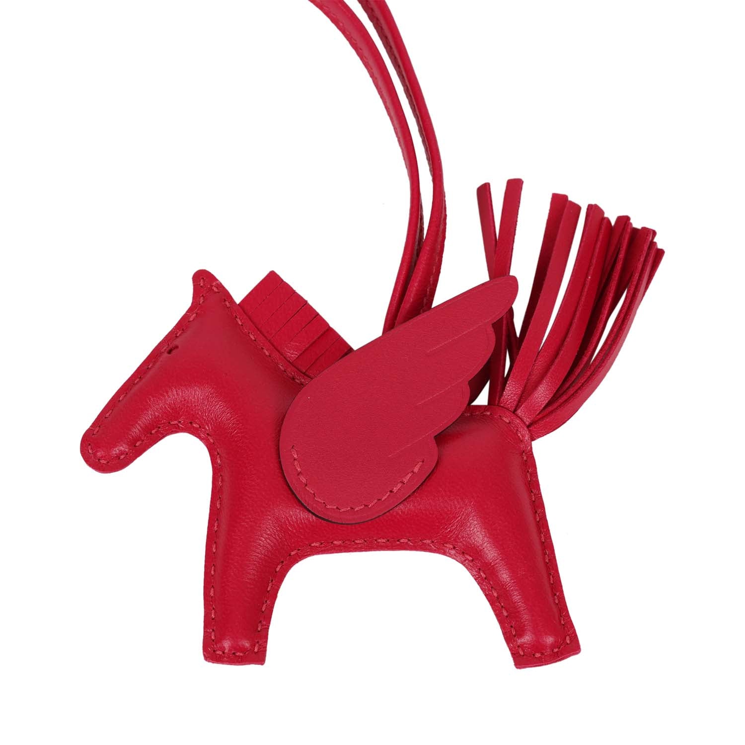 This Pegasus Rodeo bag charm is in Framboise Milo lambskin leather and accented with a Framboise mane, tail and holder and wings.
