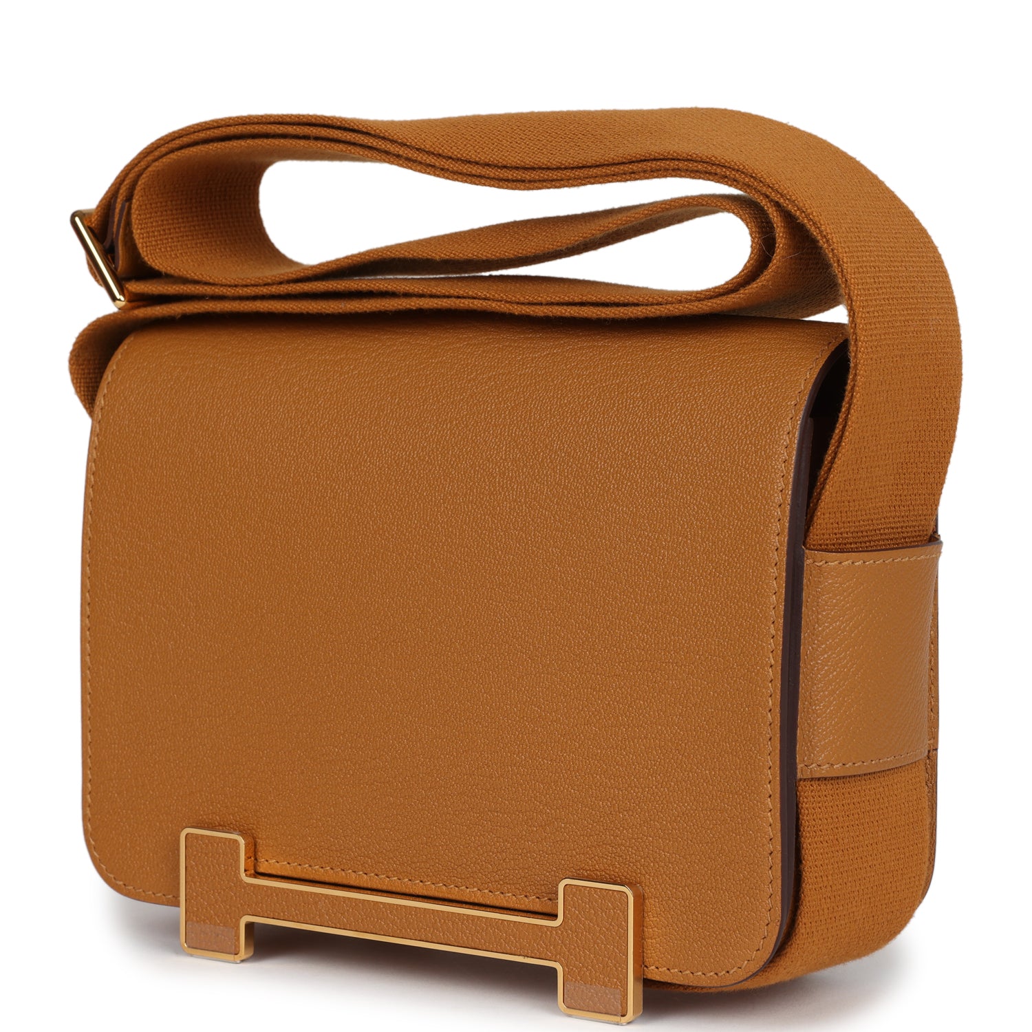 This Geta is in Caramel chevre mysore leather with gold hardware and has tonal stitching, a Caramel magnetic flap closure and adjustable shoulder strap.