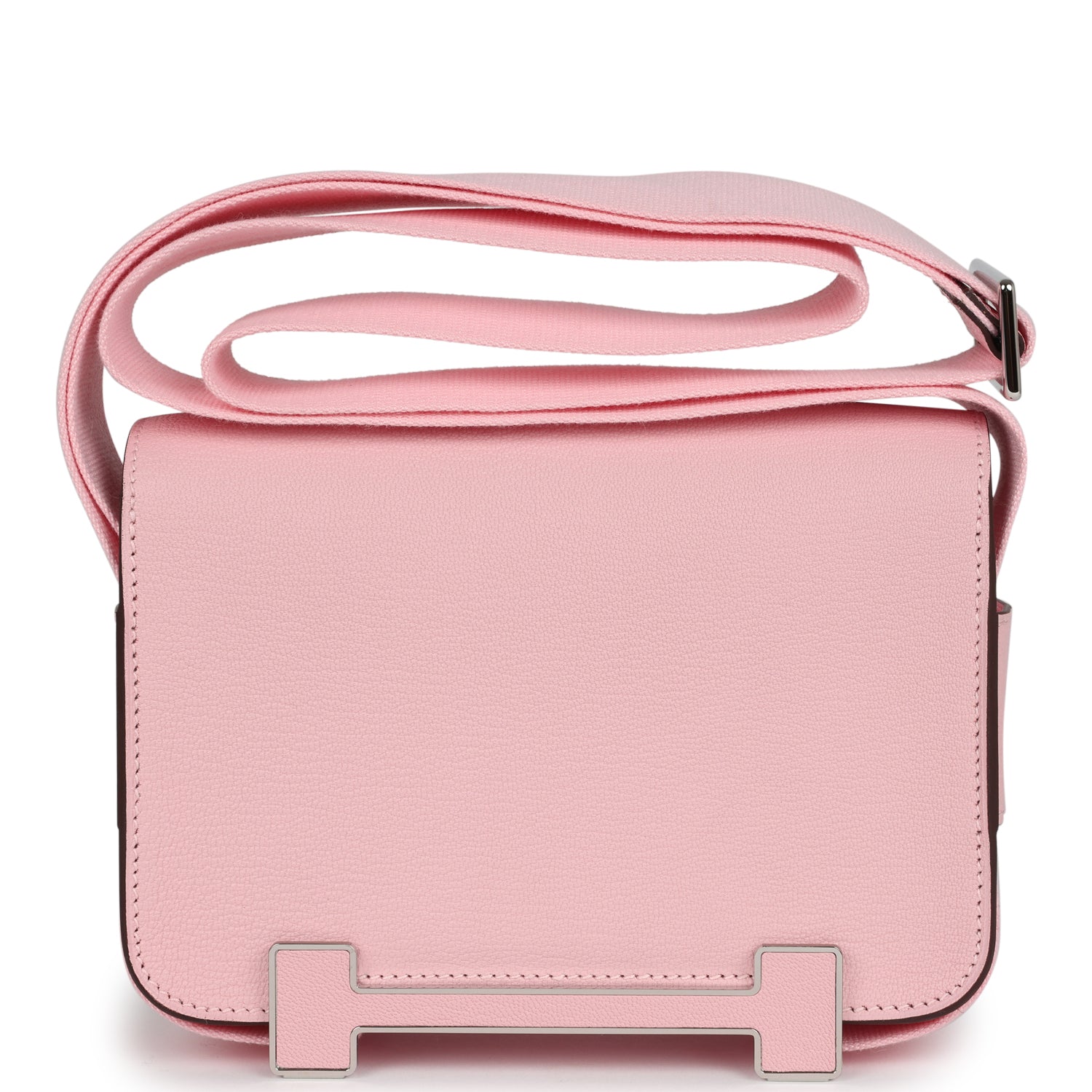 This Verso Geta is in Rose Sakura chevre mysore leather with palladium hardware and has tonal stitching, a Rose Sakura magnetic flap closure and adjustable shoulder strap.