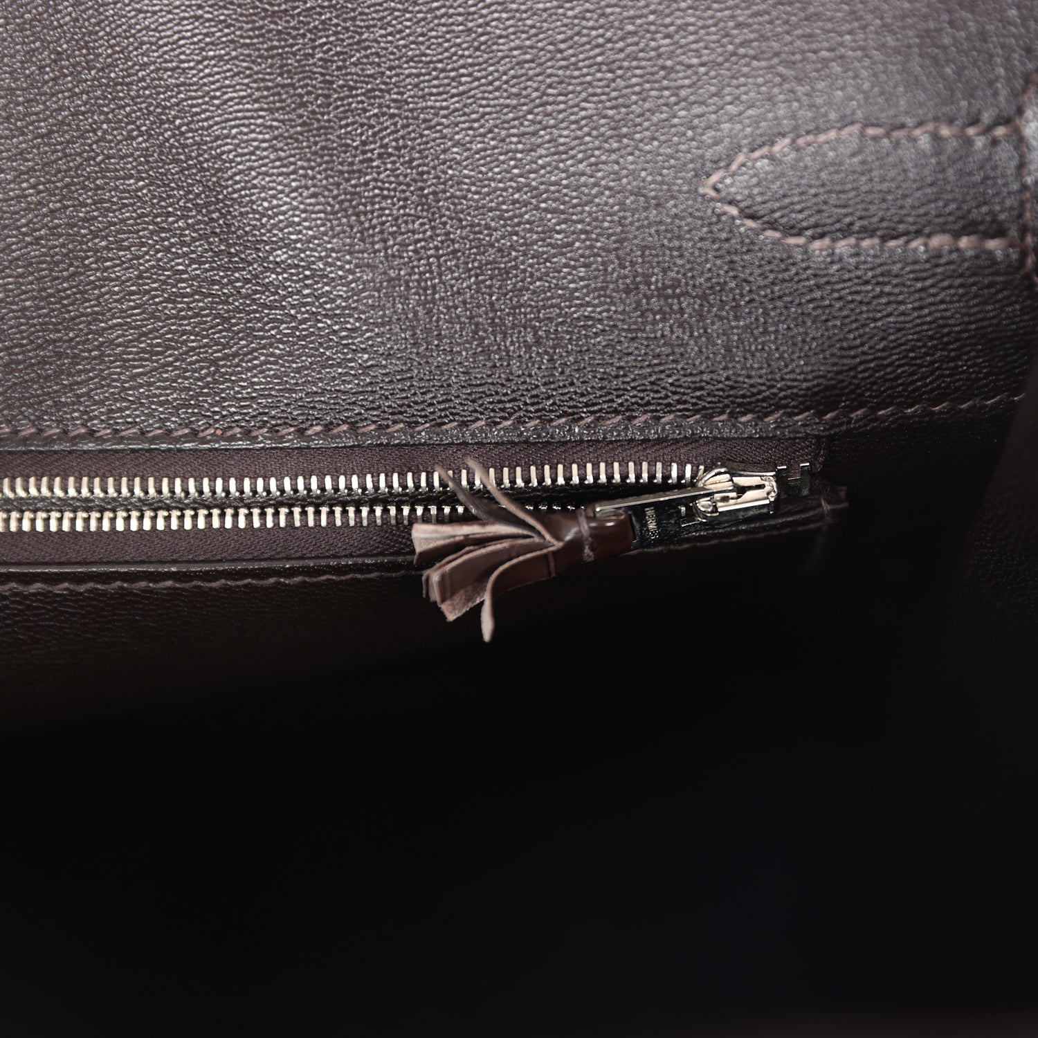 Hermes Ghillies Birkin 35 Ebene Matte Alligator and Swift Palladium Hardware