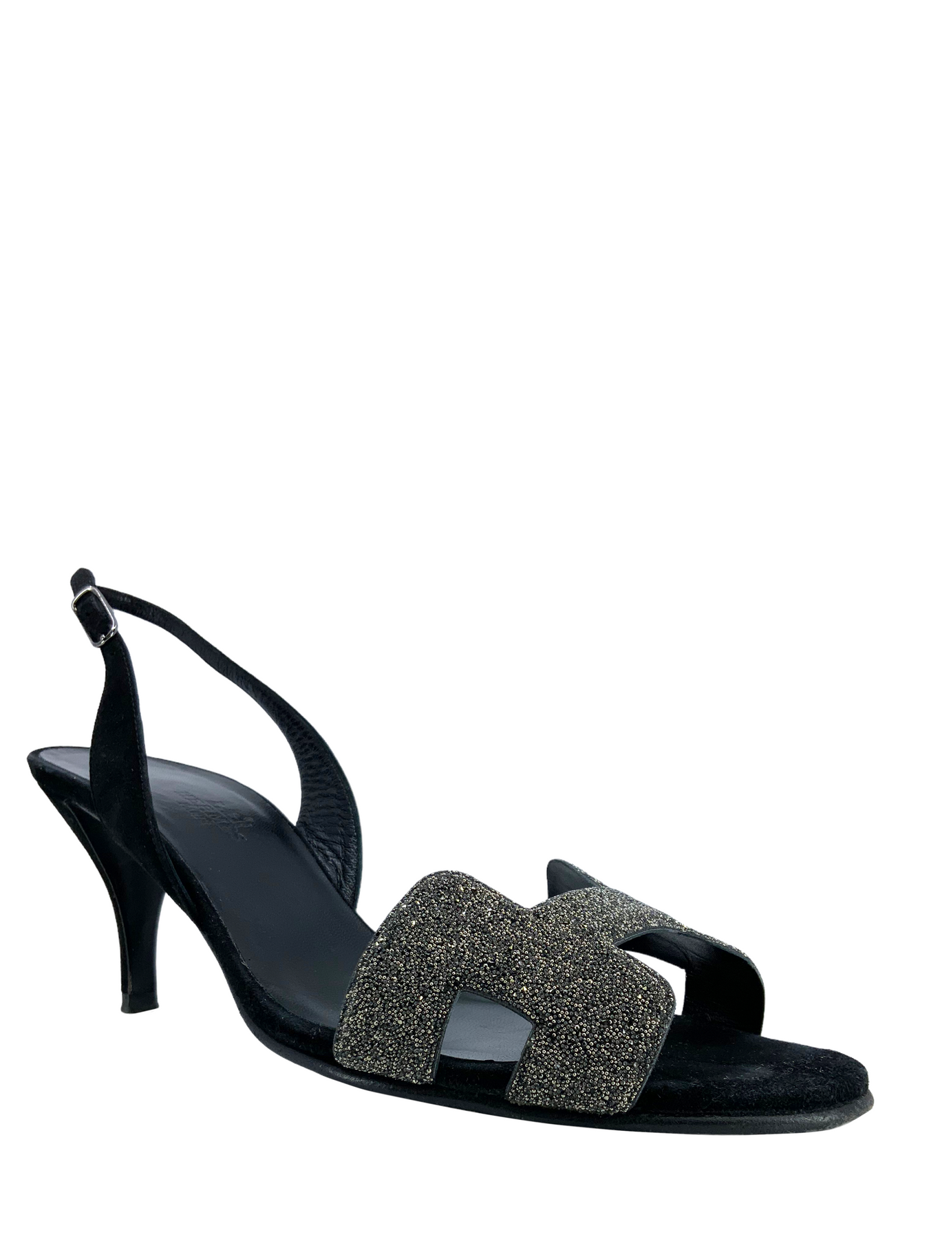HERMES Glitter H and Suede Night Slingback Sandals Size 7.5