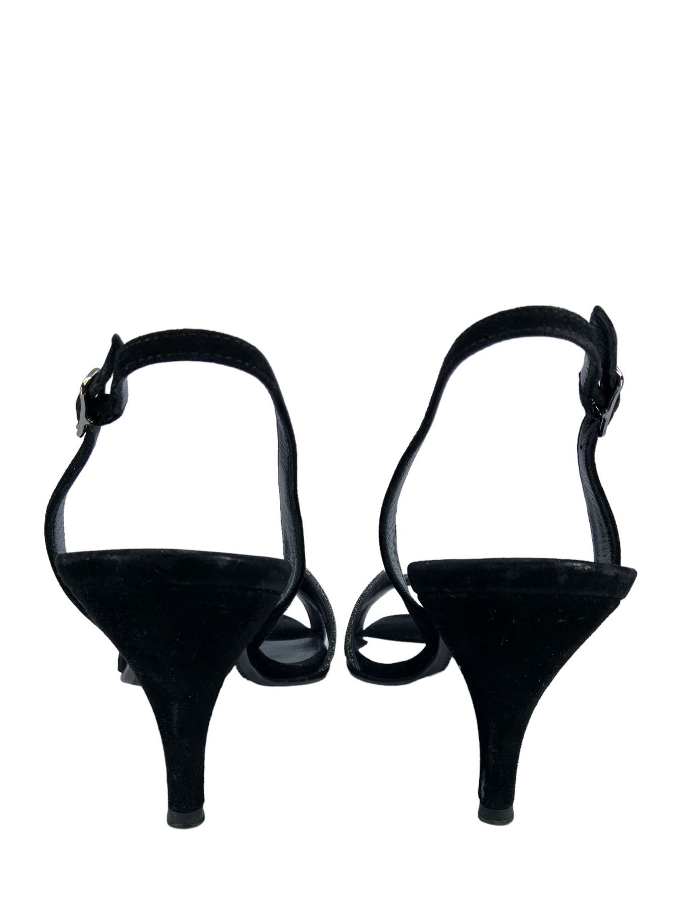 • Black suede sandal with silver glitter