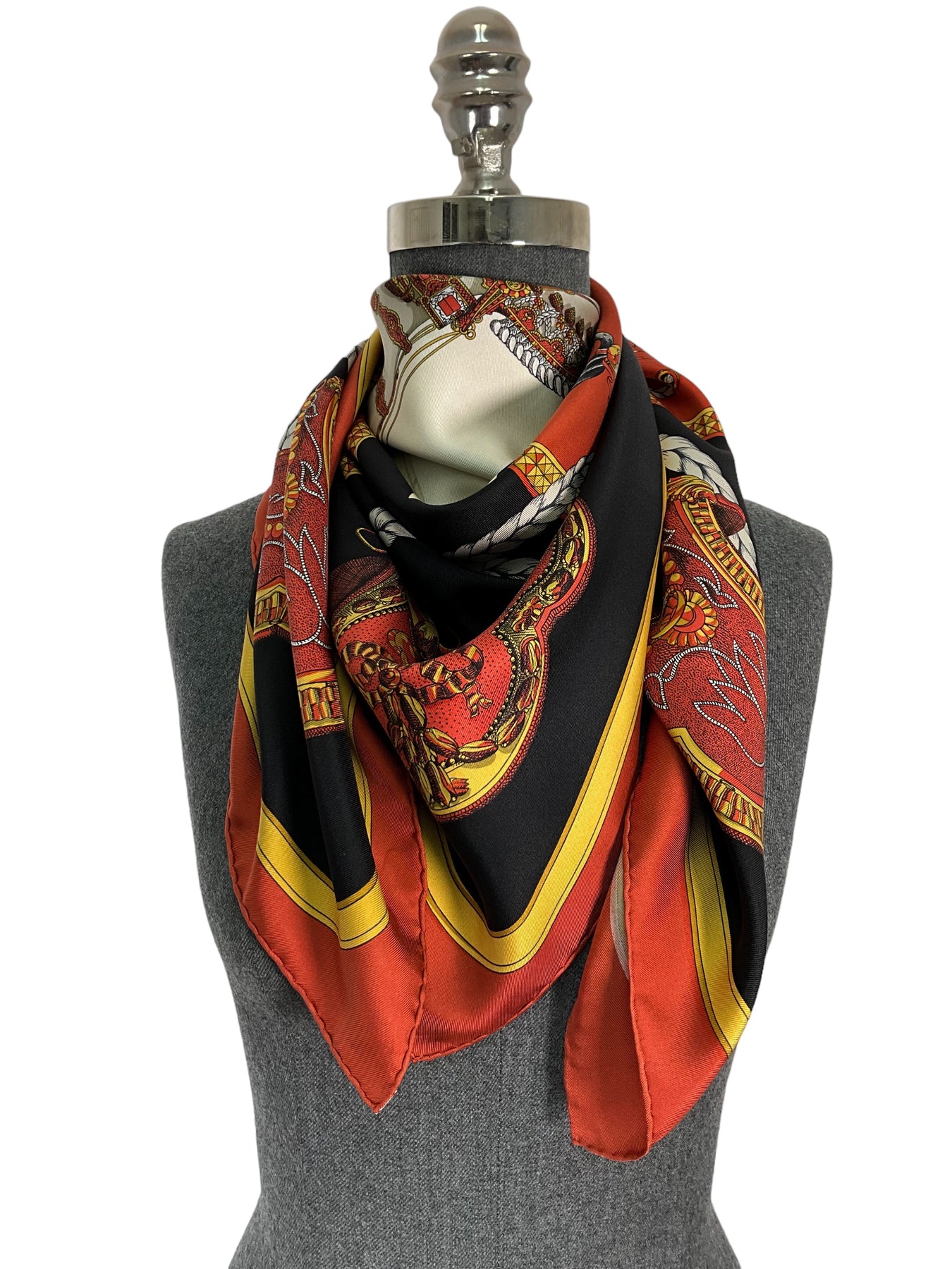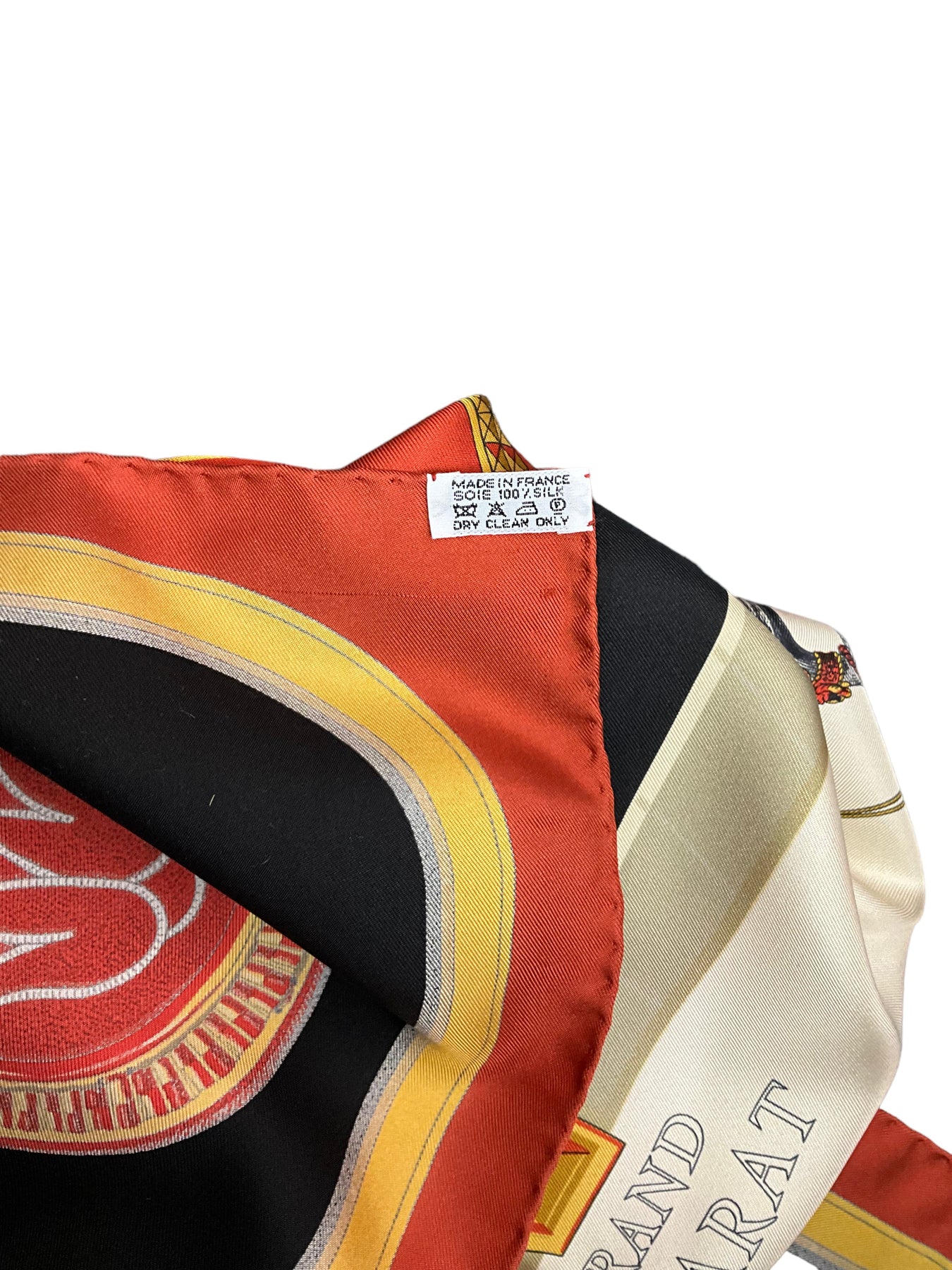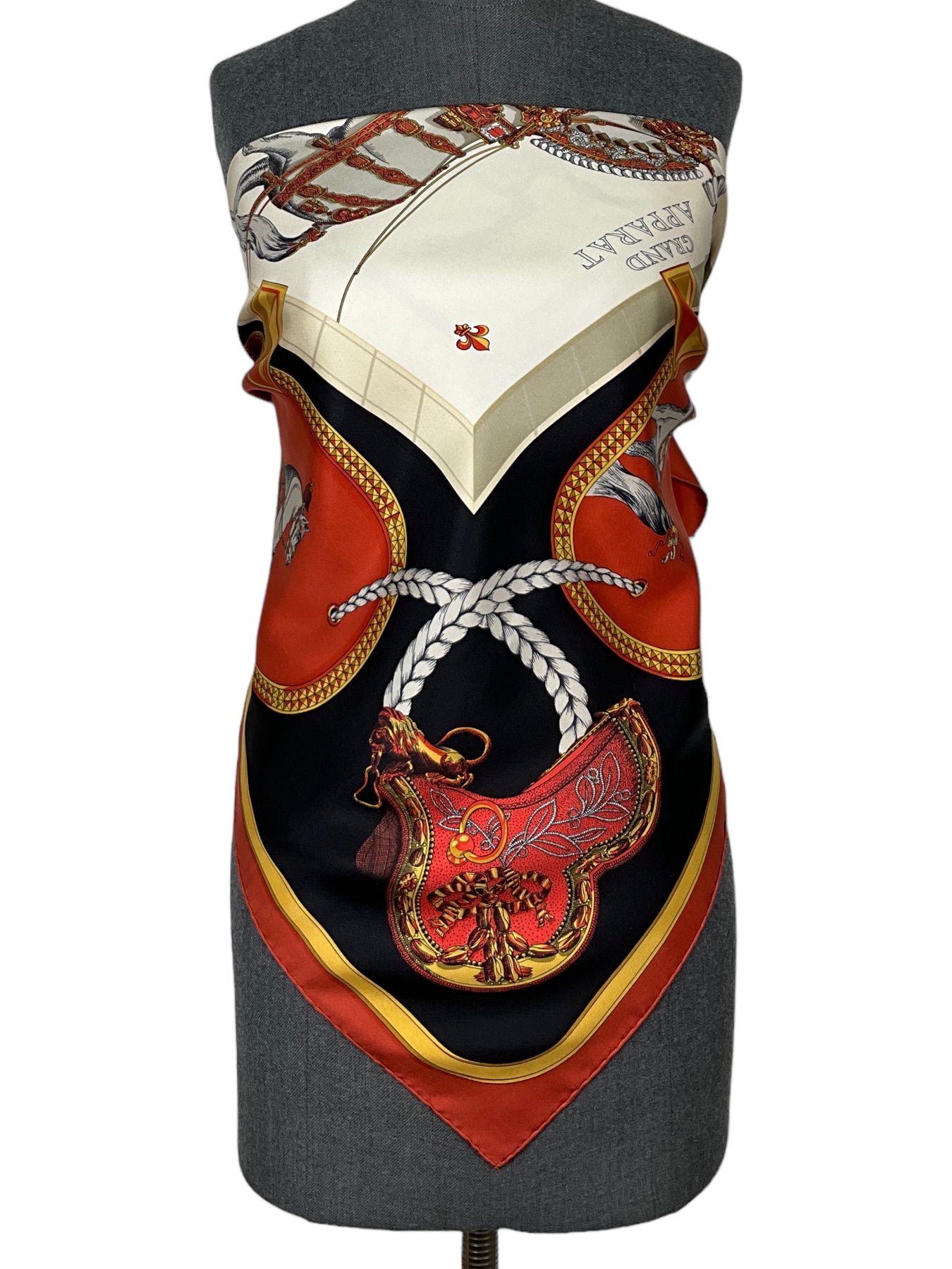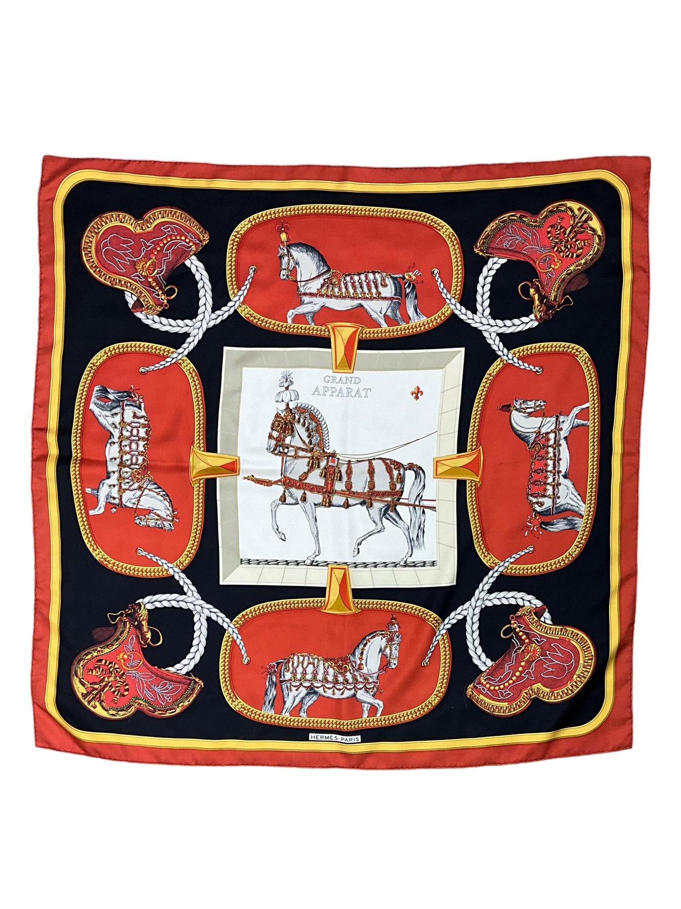 We ity of this Hermes Grand Apparat silk scarf, crafted from 100% silk. This scarf features classic French and horse motifs.