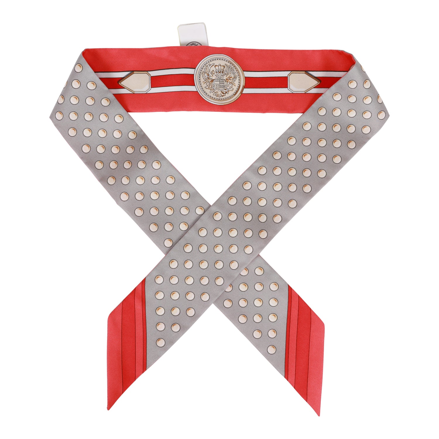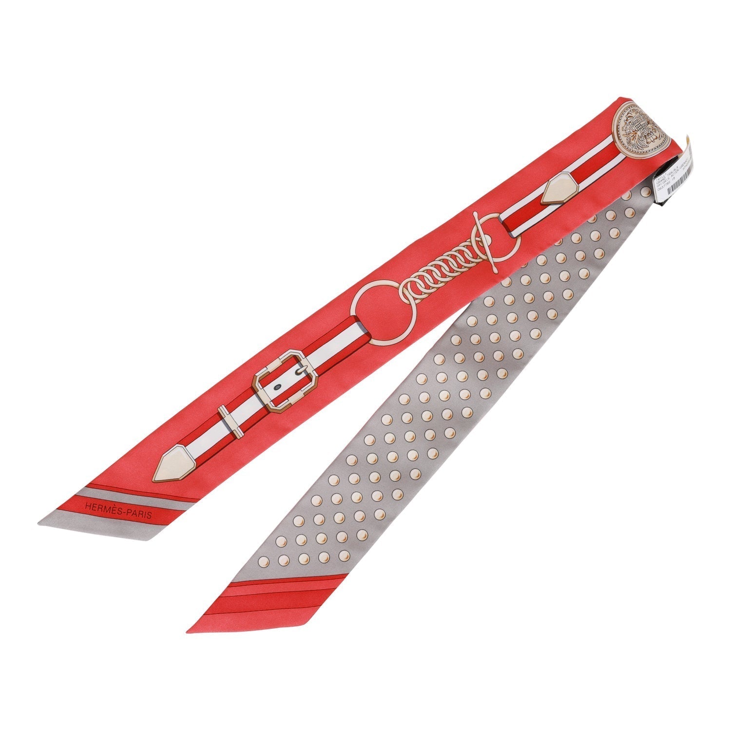 This silk twilly pair is in a gris acier colorway.