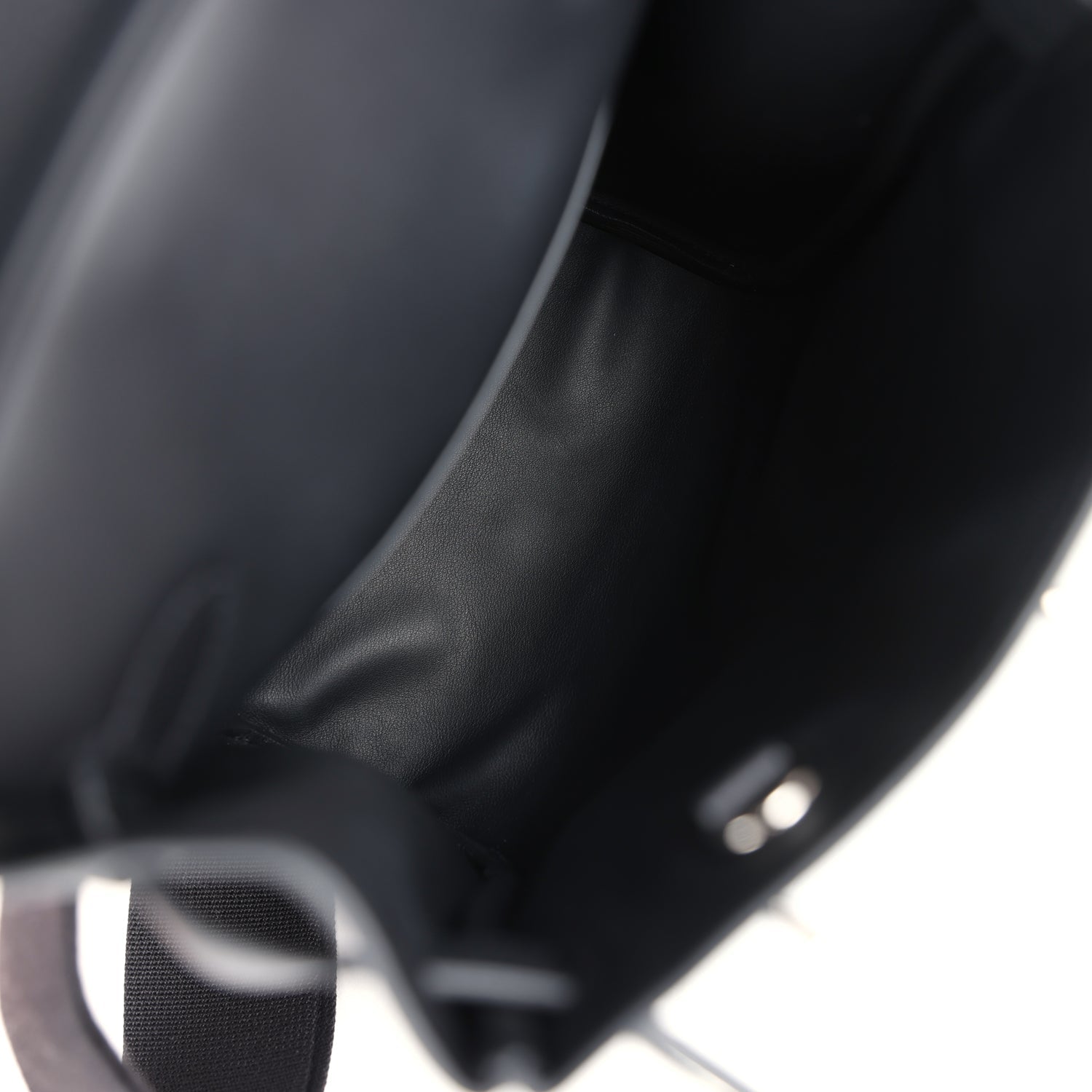 The interior is lined in black swift and has an open pocket on the rear wall.