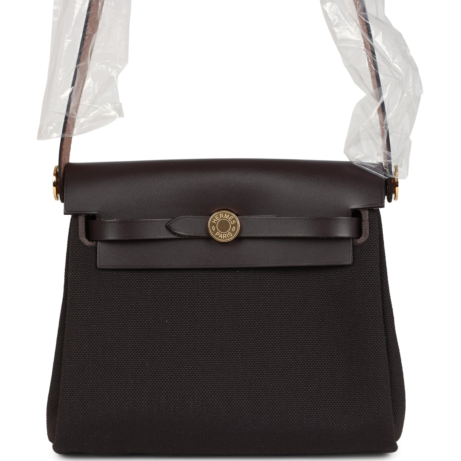 Hermes Herbag Zip 20 Mini Ebene Toile H Canvas and Vache Hunter Gold Hardware