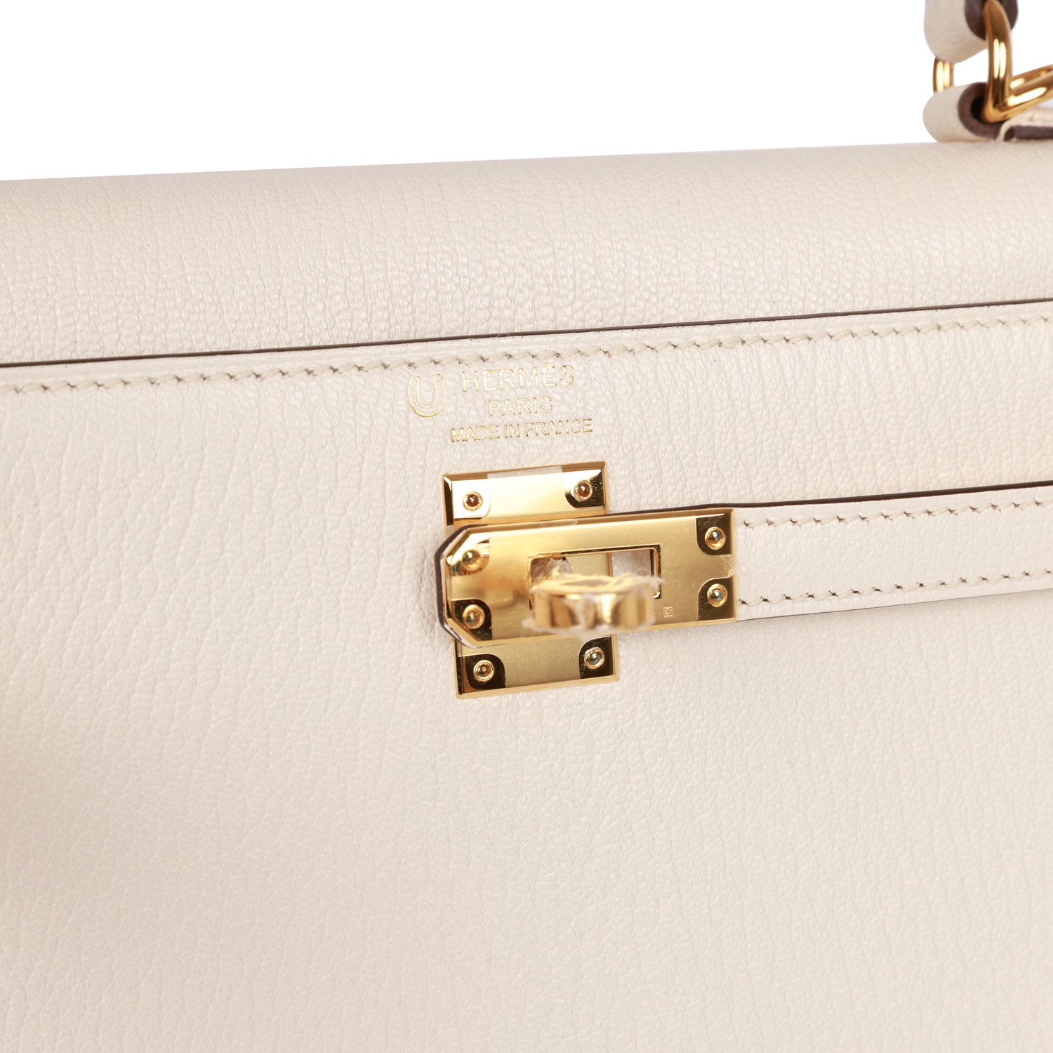 This Special Order Kelly is a Verso in Nata chevre, has gold hardware, tonal stitching, two straps with front toggle closure, clochette with lock and two keys, single rolled handle and removable shoulder strap.