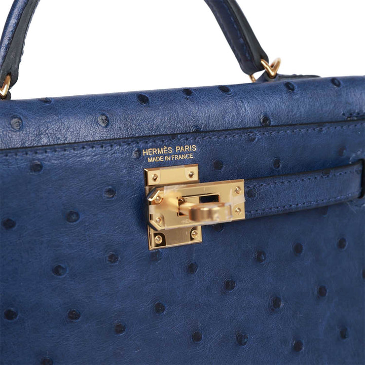 Hermes Kelly 20 Bleu Saphir Ostrich Gold Hardware