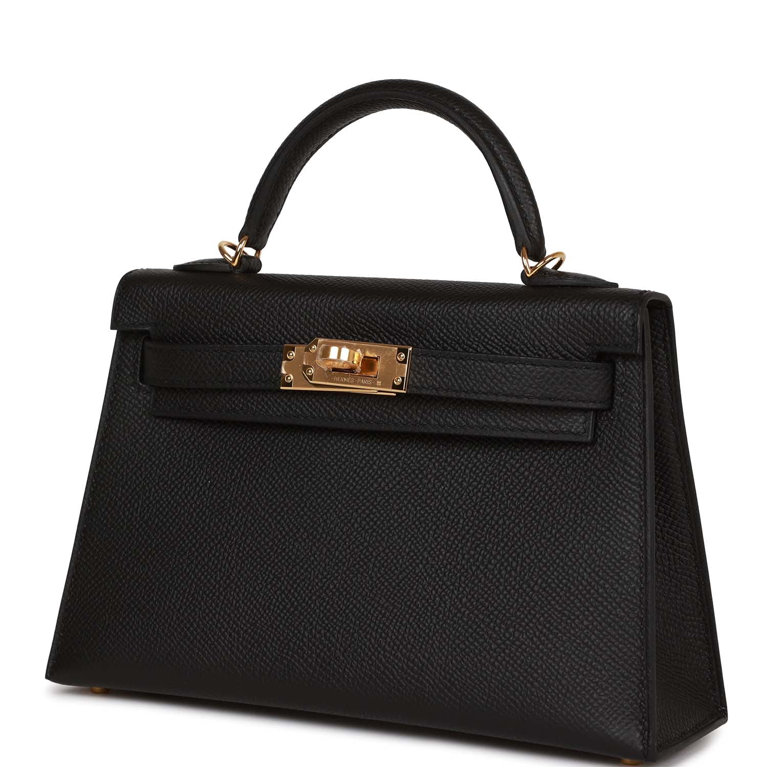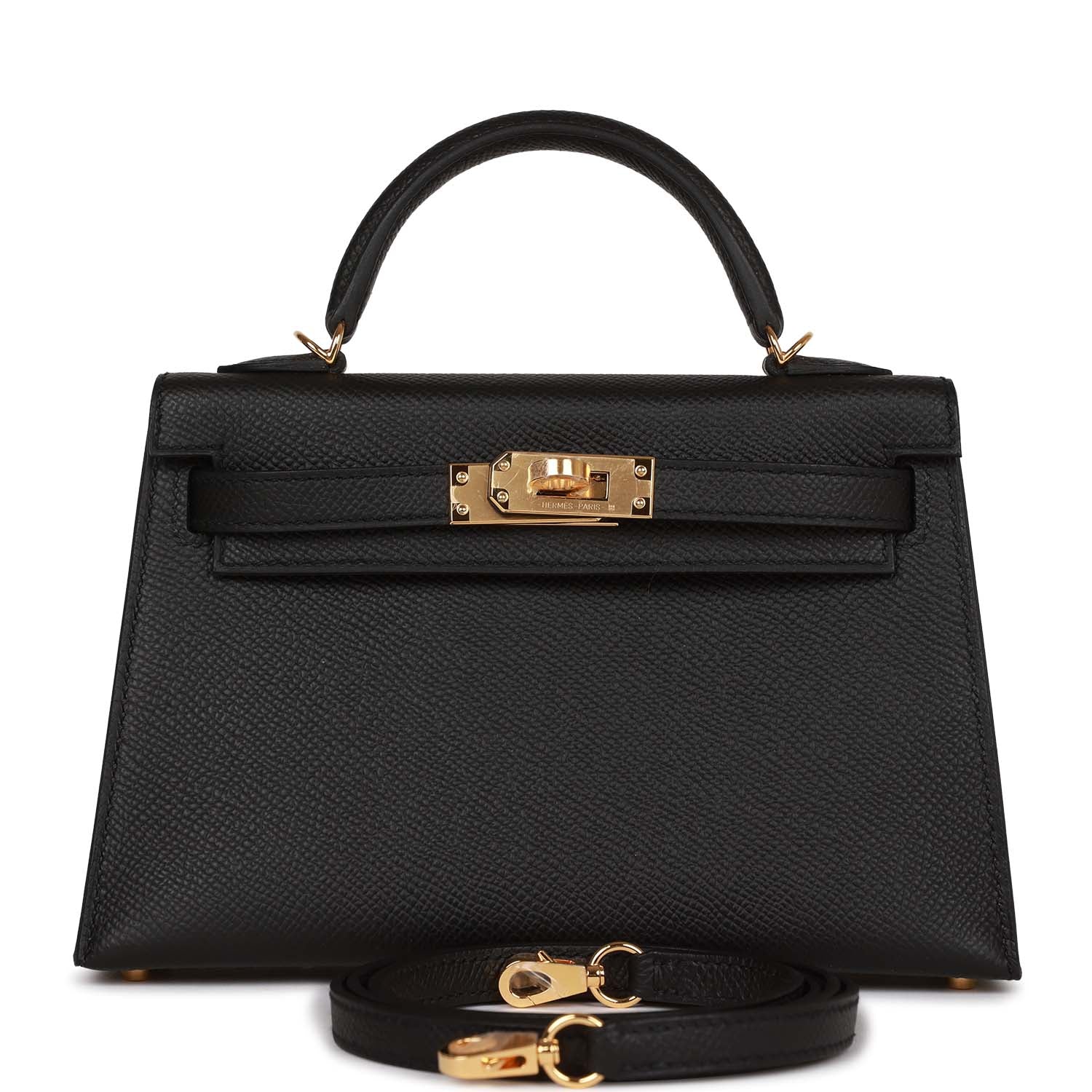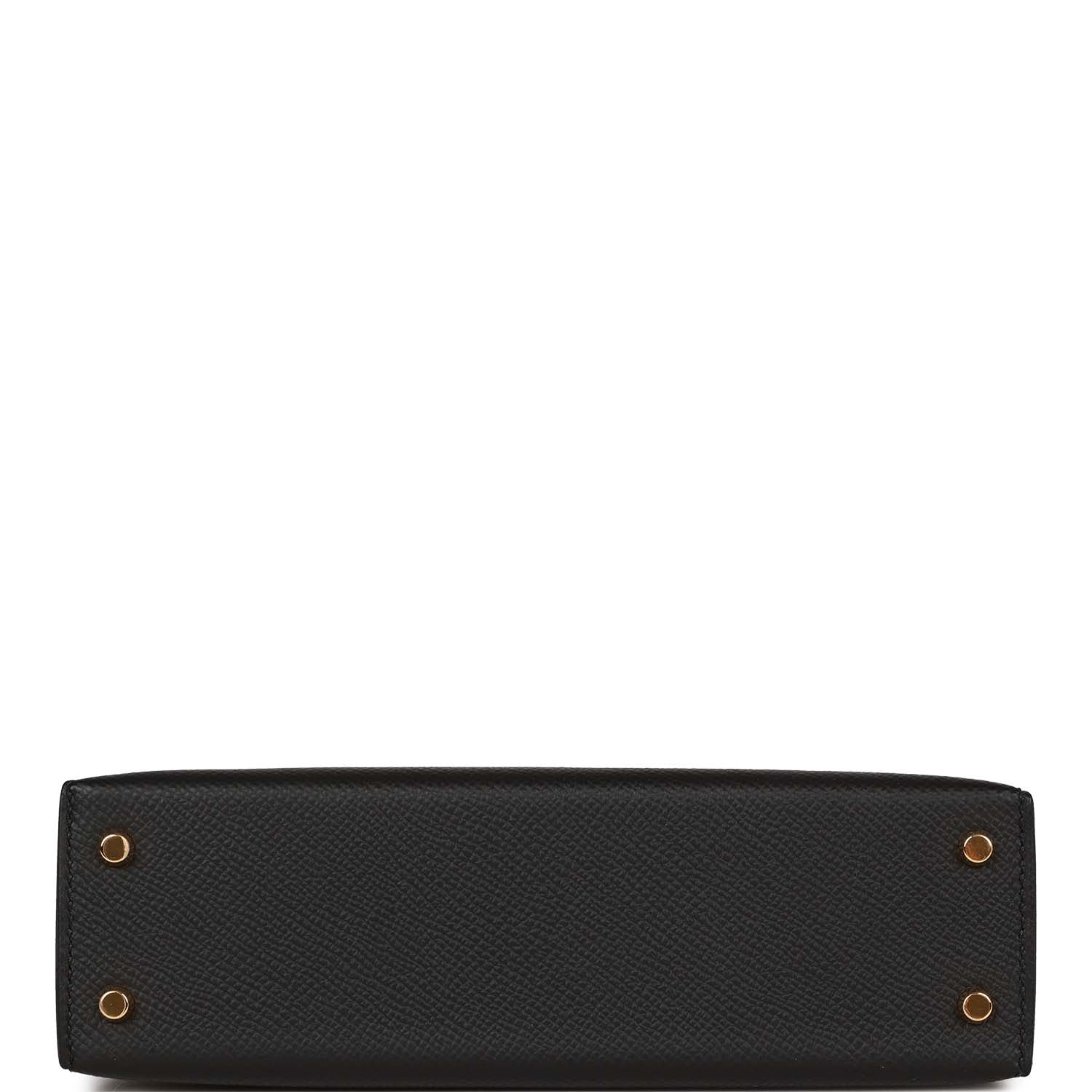This Kelly, in the Sellier style, is in Black epsom leather with gold hardware and has tonal stitching, two front straps with front toggle closure, single rolled handle and removable shoulder strap.