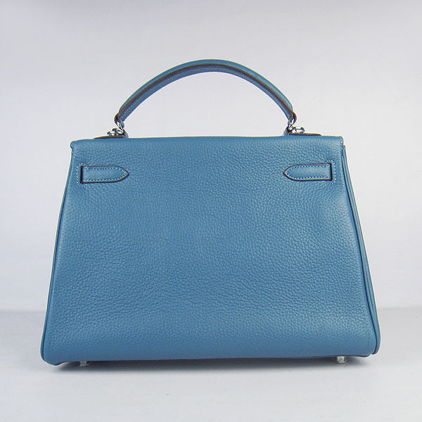 This Hermes Kelly 32cm Togo Leather handbag 6108 blue/silver comes with:Hermes lock,keys,clochette,sleepers,care booklet,rain protection,tags and copy of the genuine receipt from an official Hermes store.