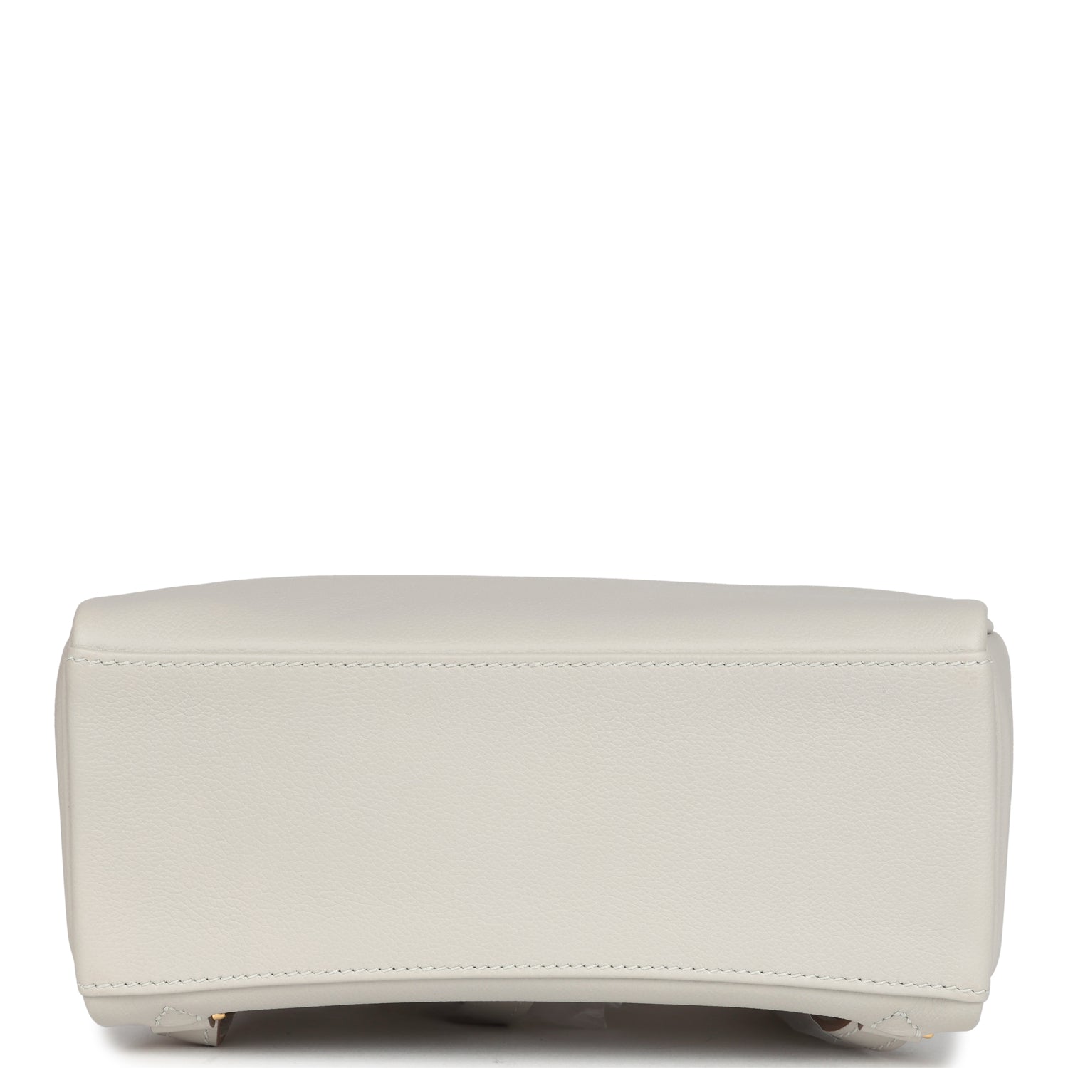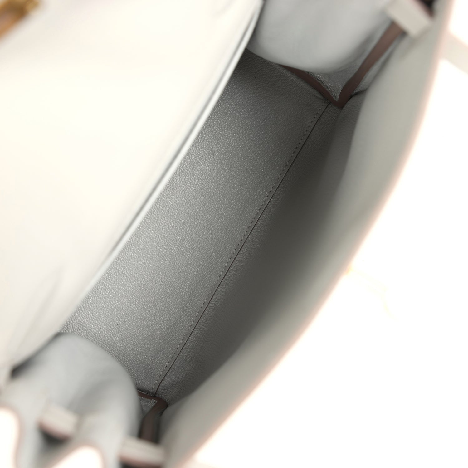 The interior is lined in Gris Perle chevre and has an open pocket on the rear wall.