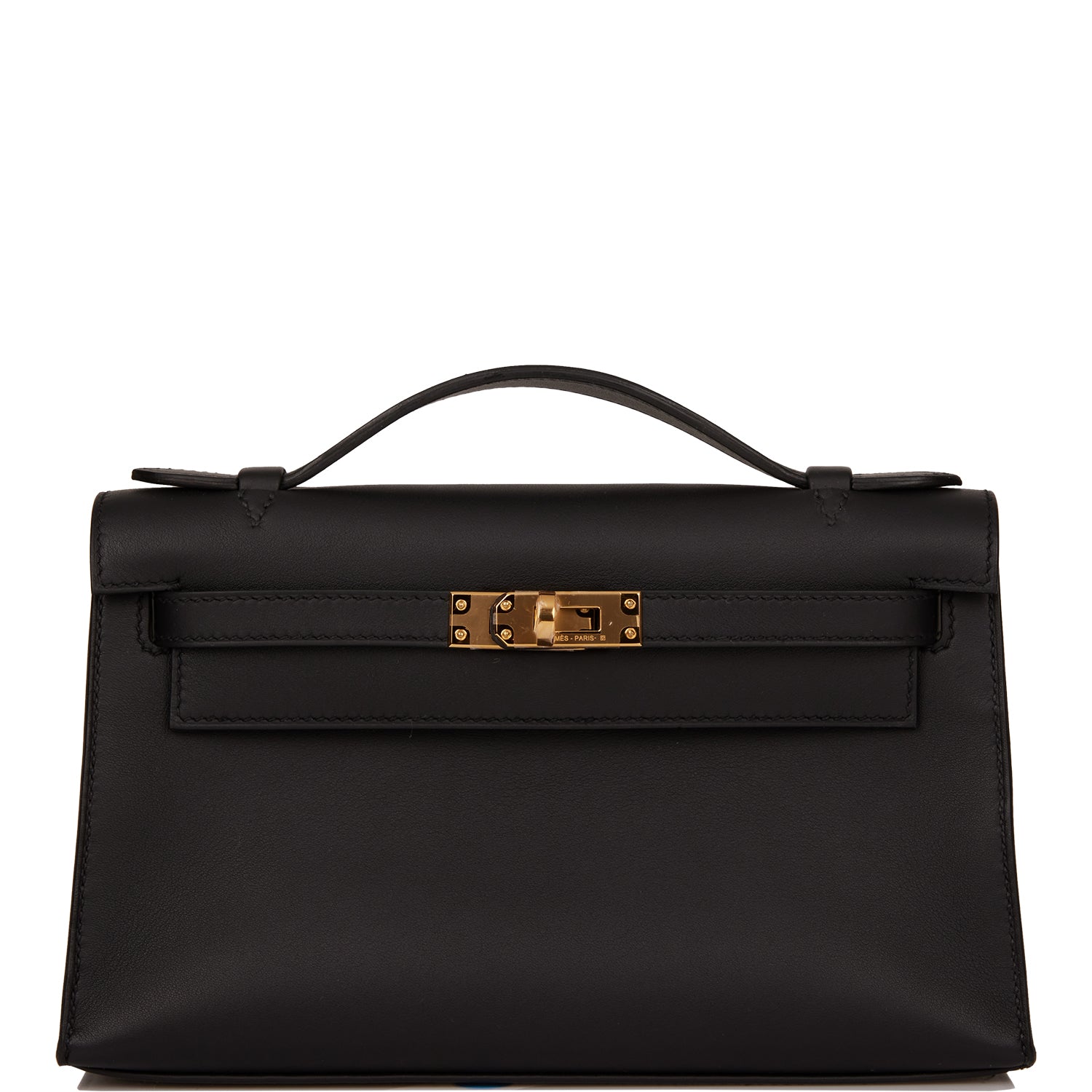 Hermes Kelly Pochette Black Swift Gold Hardware