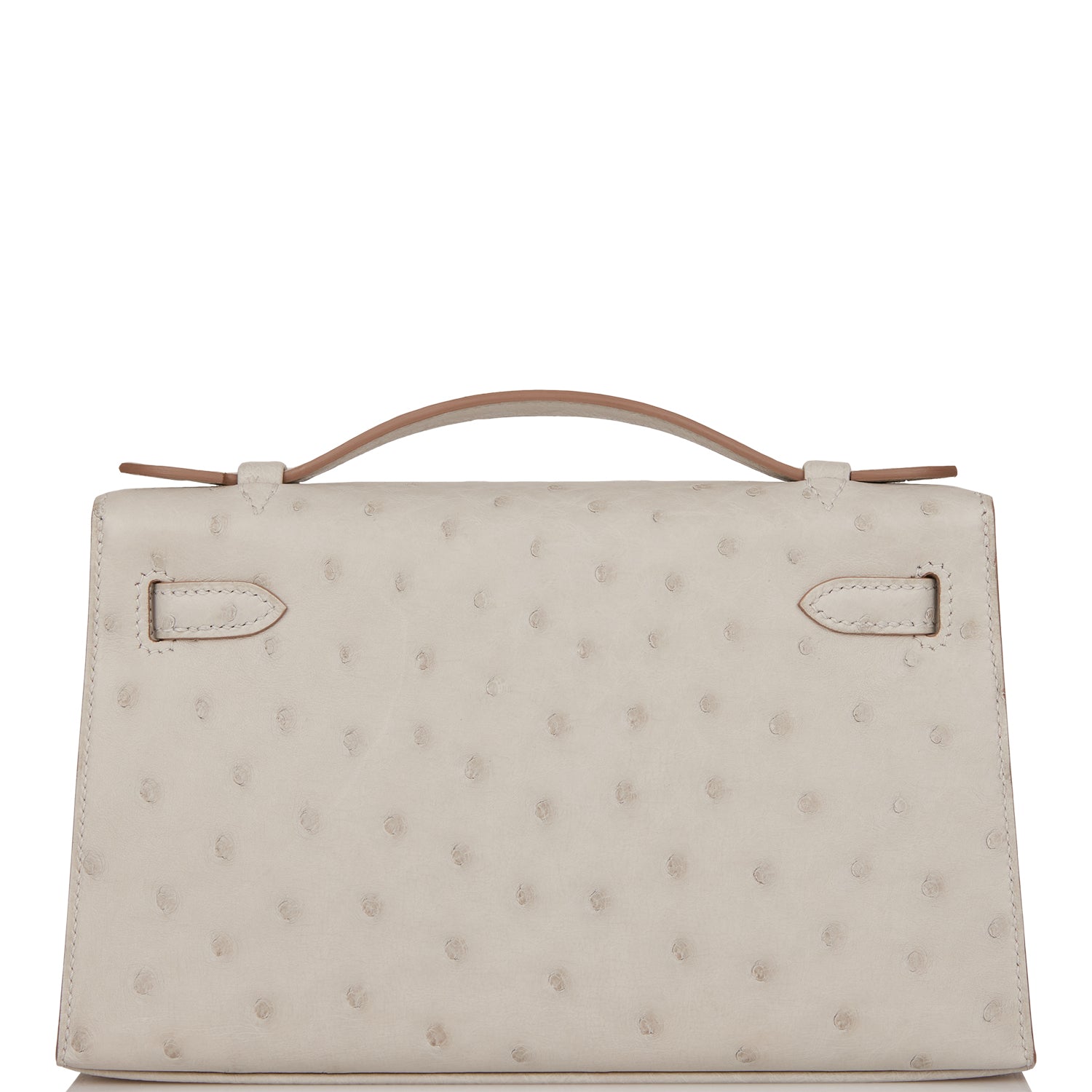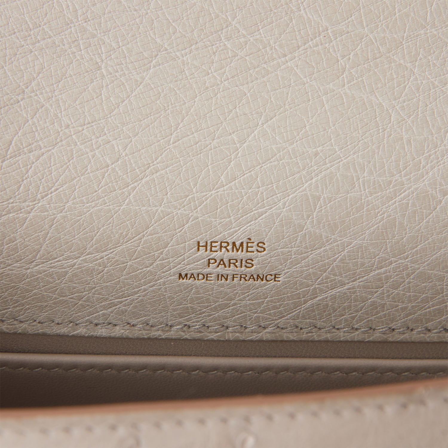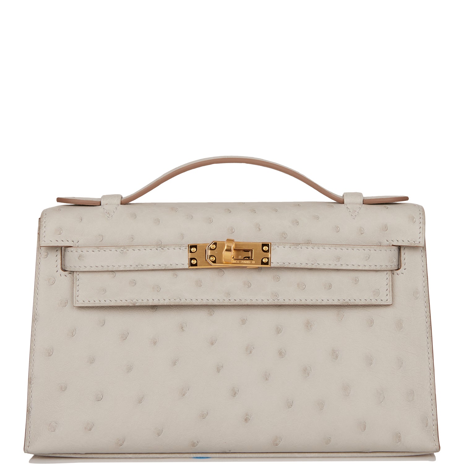Hermes Kelly Pochette Gris Perle Ostrich Gold Hardware