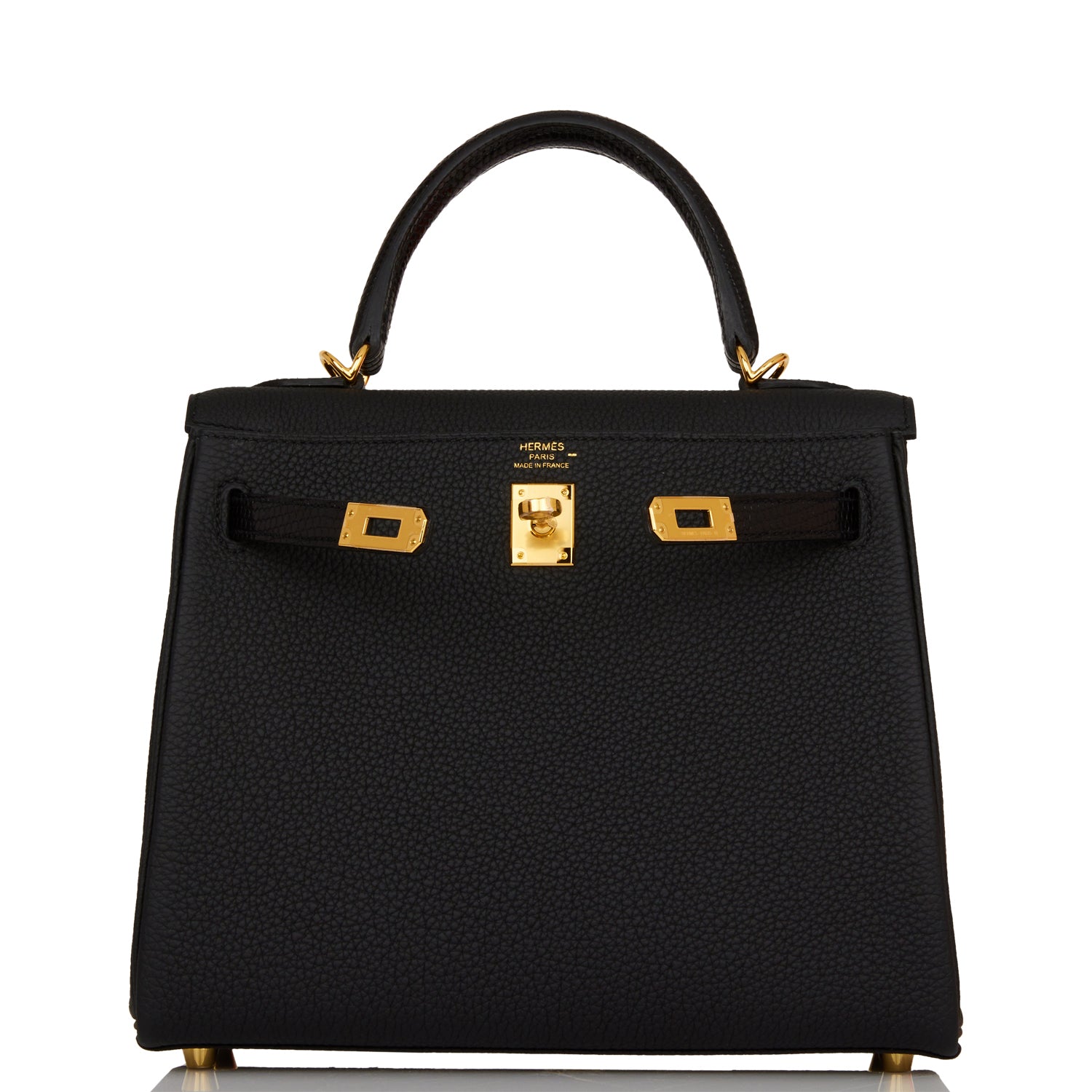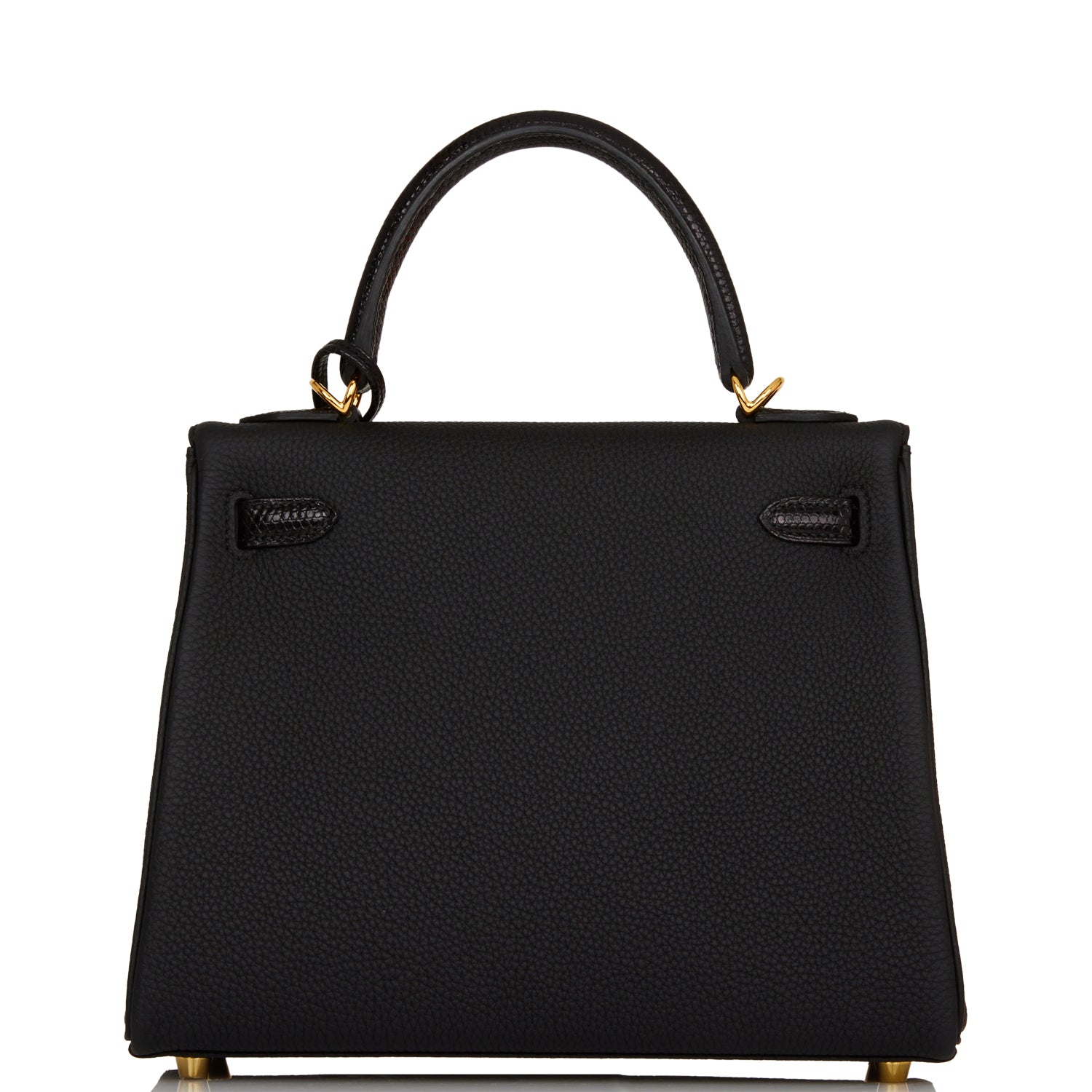 Hermes Kelly 25 Retourne Black Togo and Lizard Touch Gold Hardware
