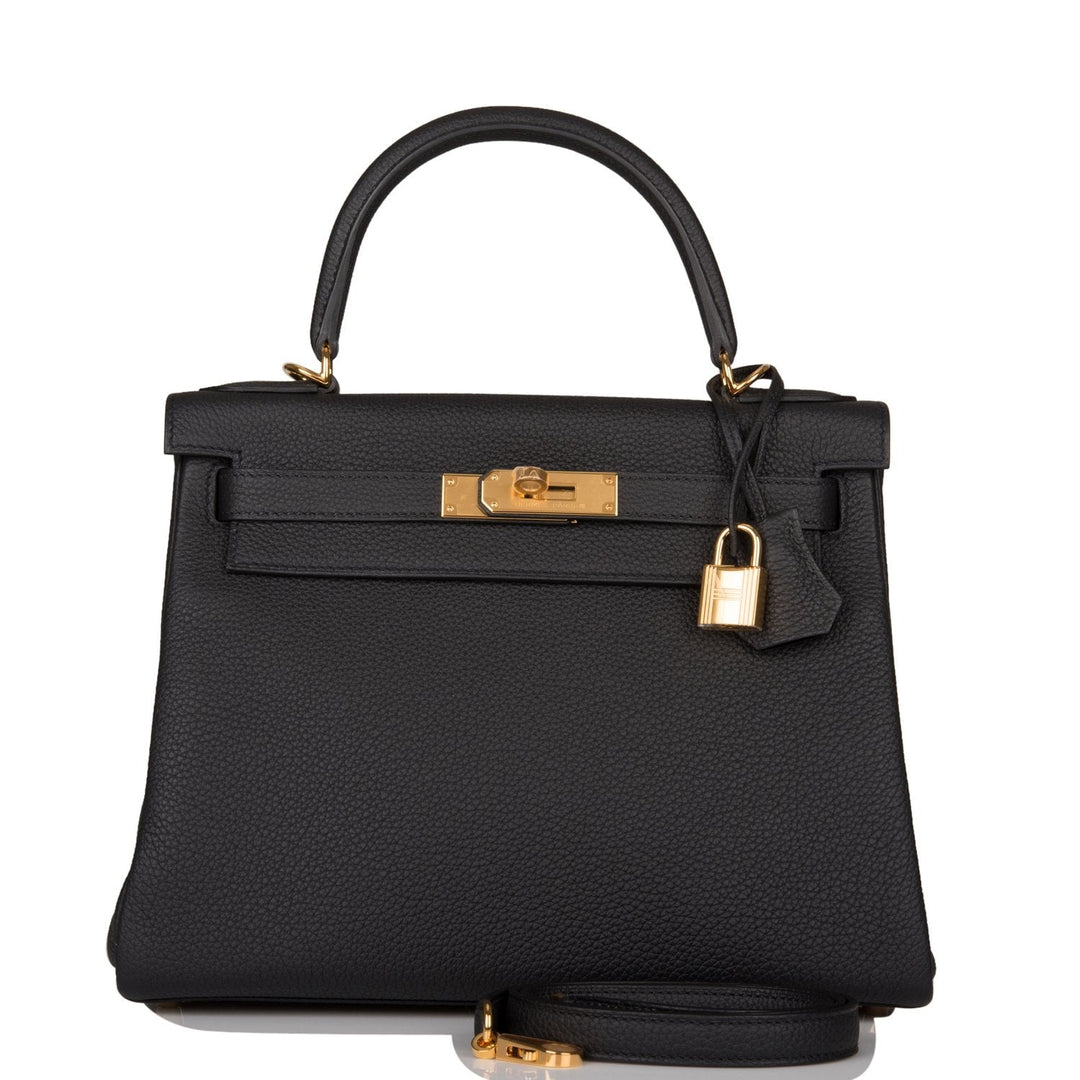Hermes Kelly 28 Retourne Black Togo Gold Hardware