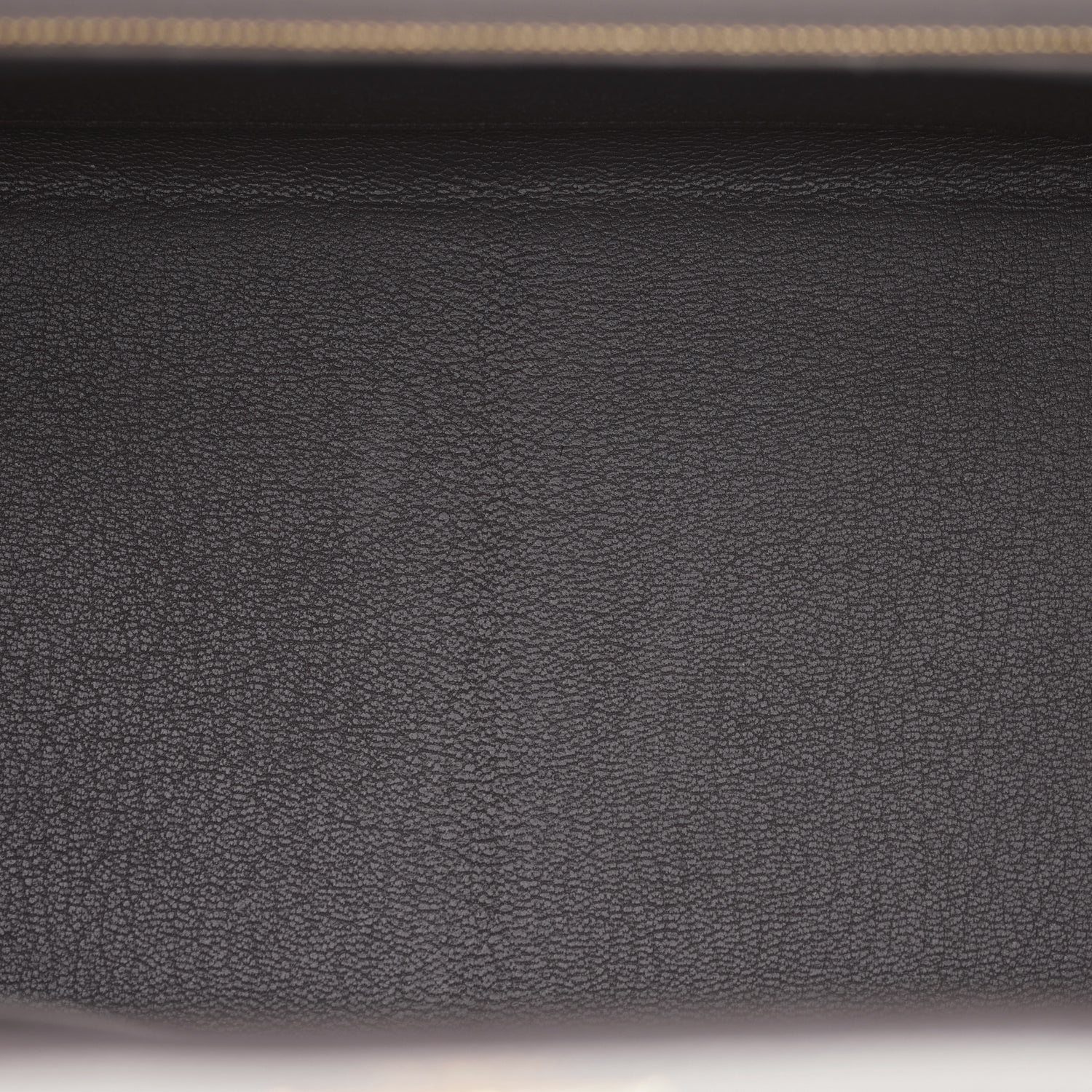The interior is lined in Etain chevre and has one zip pocket with Hermes engraved pull and two open pockets on the opposite side.