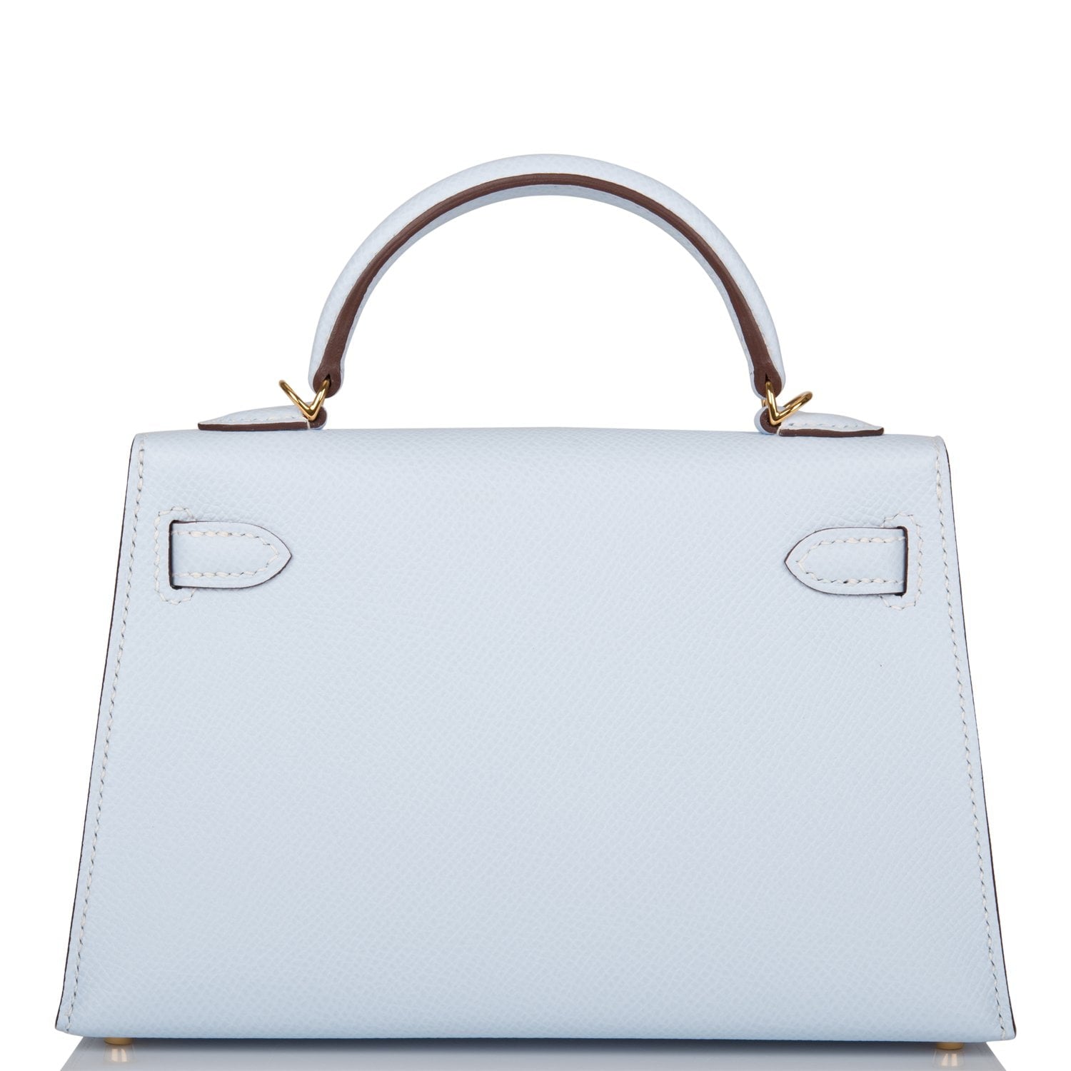 The interior is lined with Bleu Brume lambskin leather and has one open pocket on the back wall.