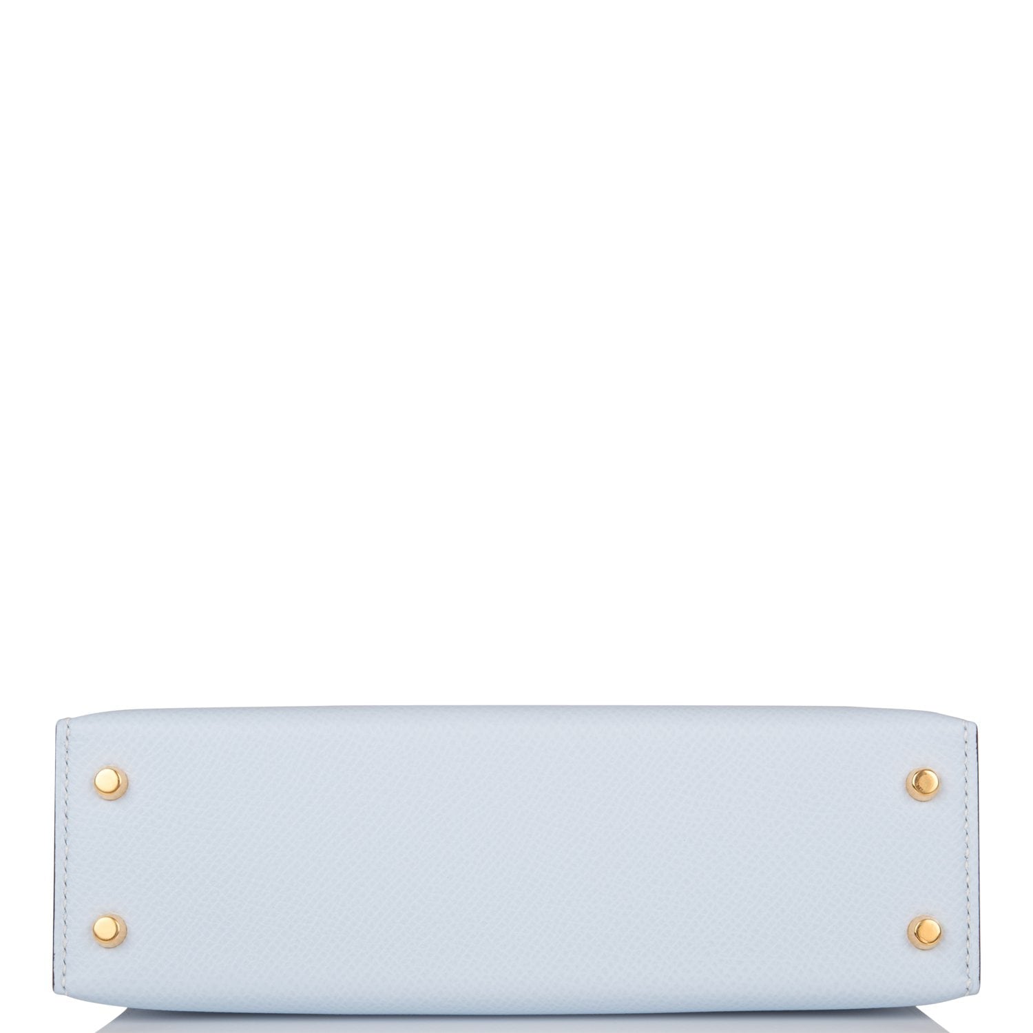 This Kelly, in the Sellier style, is in Bleu Brume epsom leather with gold hardware and has tonal stitching, two straps with front toggle closure, single rolled handle and removable shoulder strap.