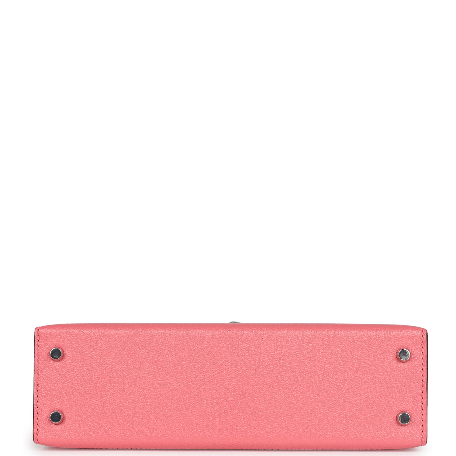 Verso Kelly, in the Sellier style, is in Rose D'Ete chevre mysore leather with palladium hardware and has tonal stitching, two straps with front toggle closure, single rolled handle and removable shoulder strap.