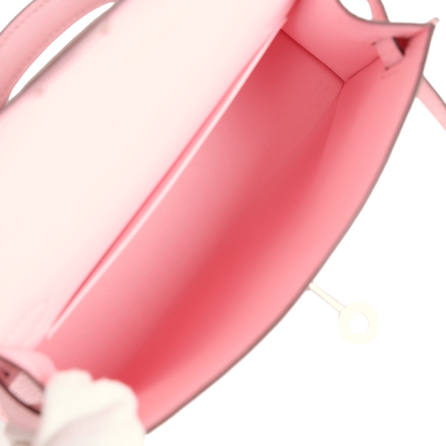 The interior is lined with Rose Sakura lambskin leather and has one open pocket on the back wall.