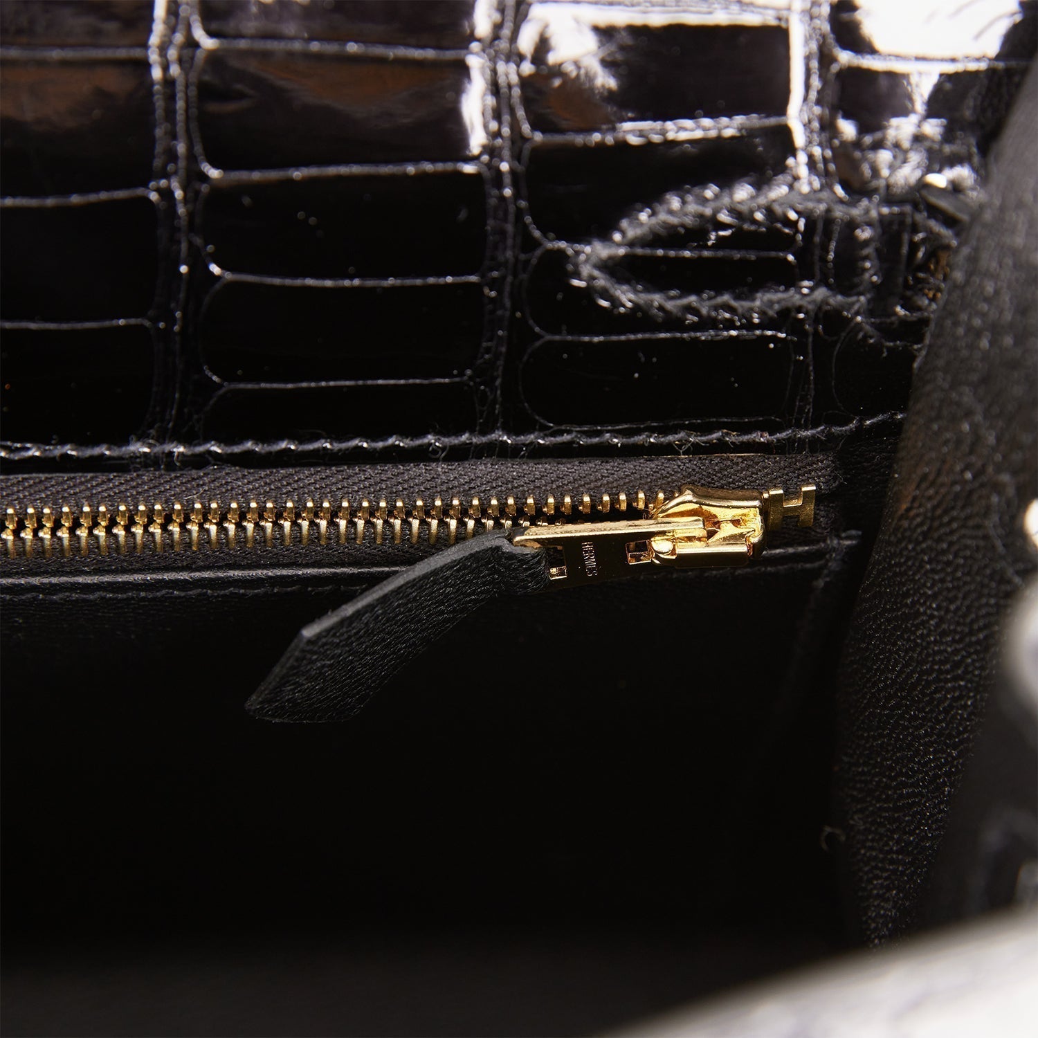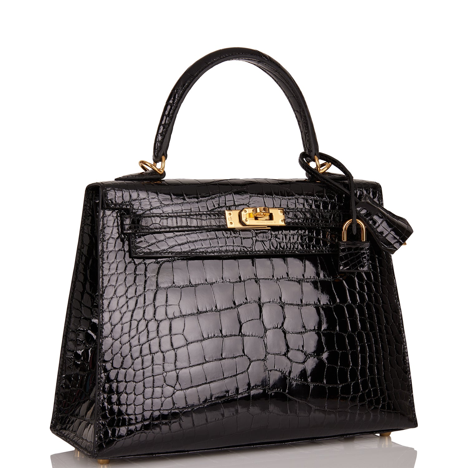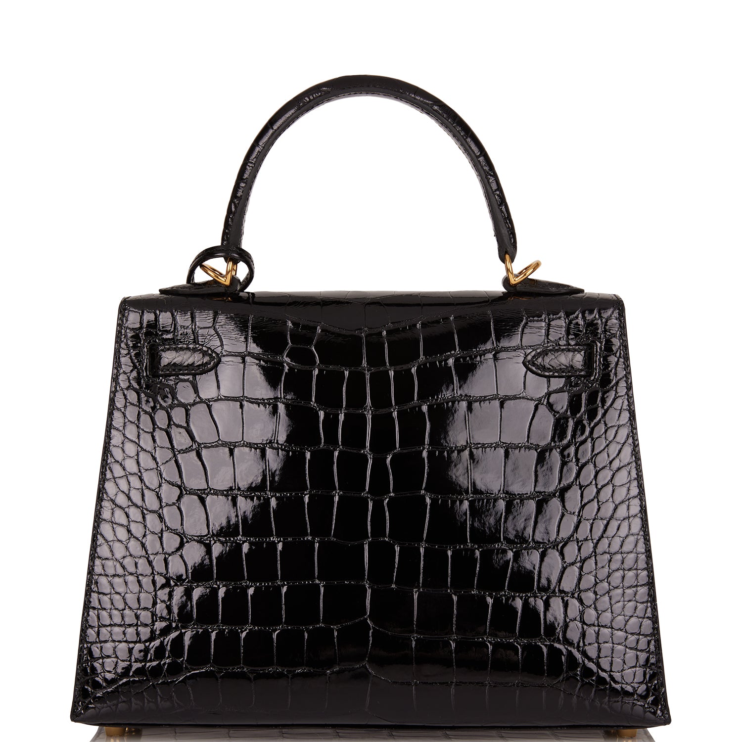 Hermes Kelly 25 Sellier Black Shiny Alligator Gold Hardware