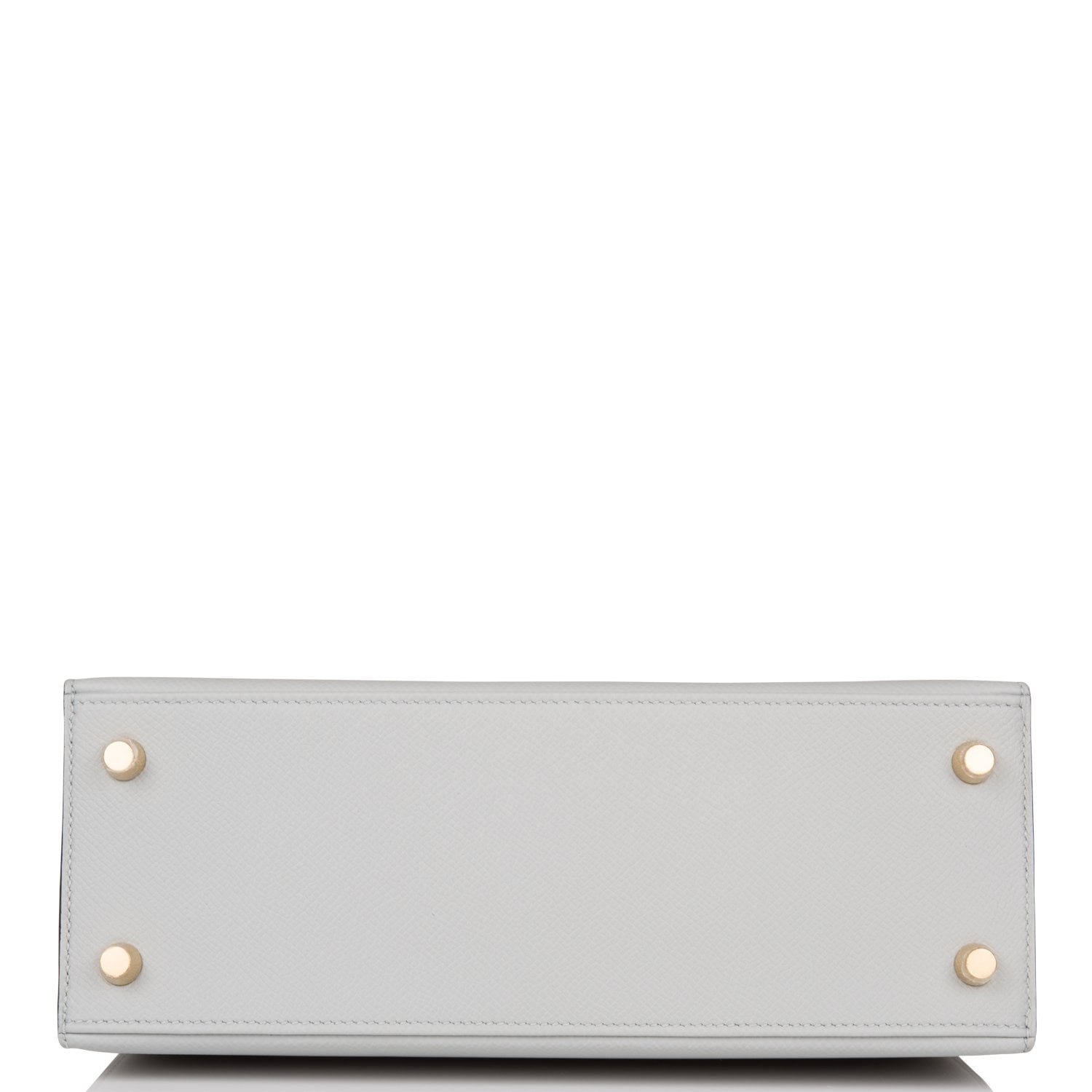 This Kelly, in the Sellier style, is in Bleu Glacier epsom leather with gold hardware and has tonal stitching two straps with front toggle closure, clochette with lock and two keys, a single rolled handle and removable shoulder strap.
