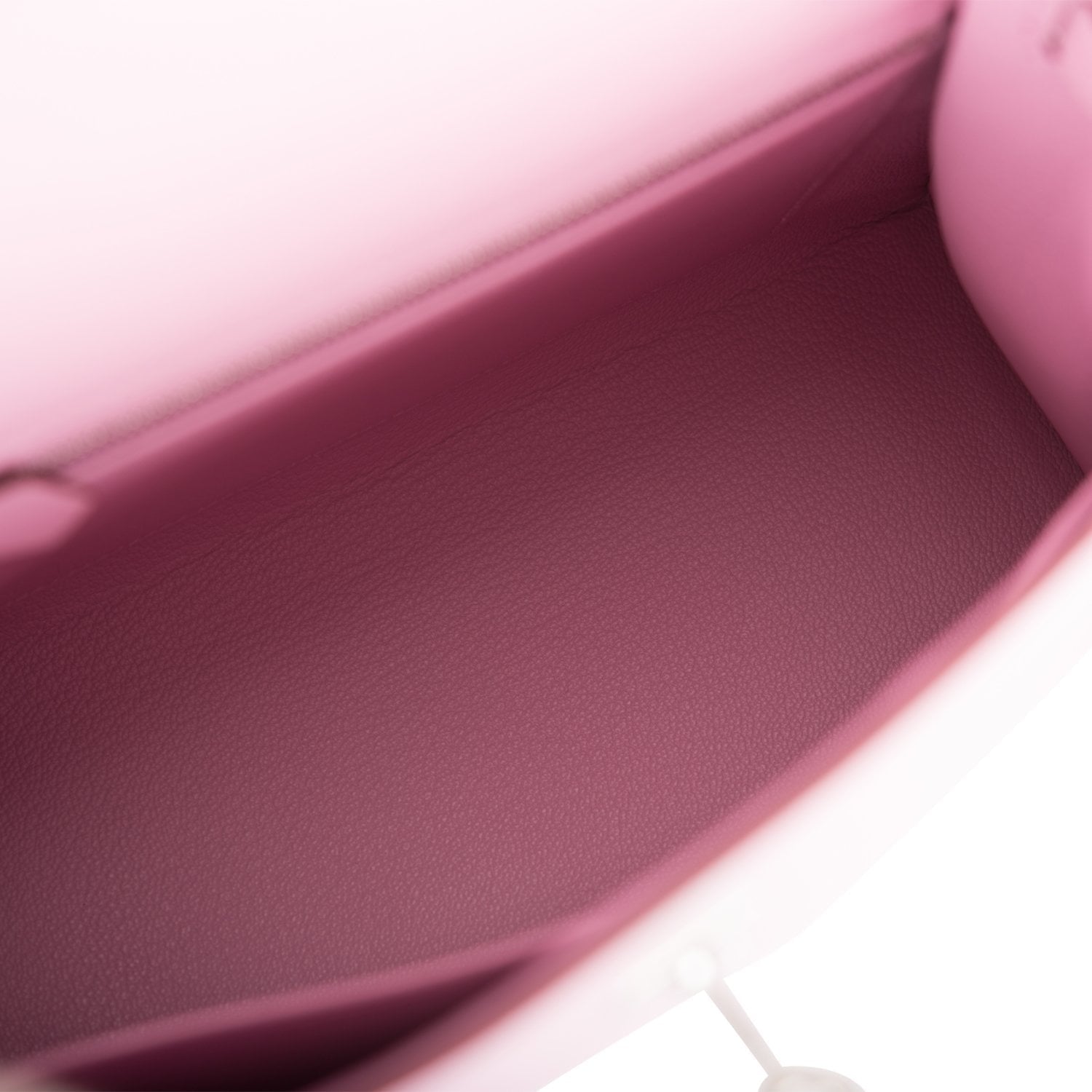 The interior is lined with Mauve Sylvestre chevre leather and has one zip pocket with an Hermes engraved pull and one open pocket on the opposite side.