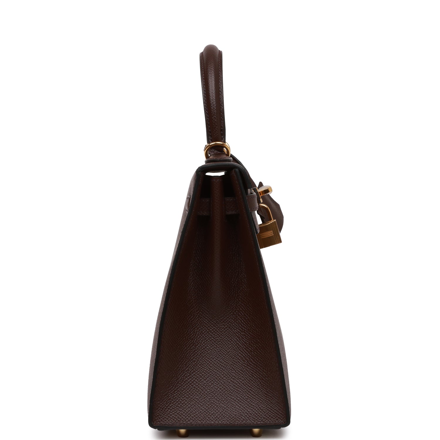 This Sellier Kelly is of Rouge Sellier epsom leather with gold hardware and has tonal stitching, front flap, two straps with center toggle closure, clochette with lock and two keys, single rolled handle and an optional shoulder strap.