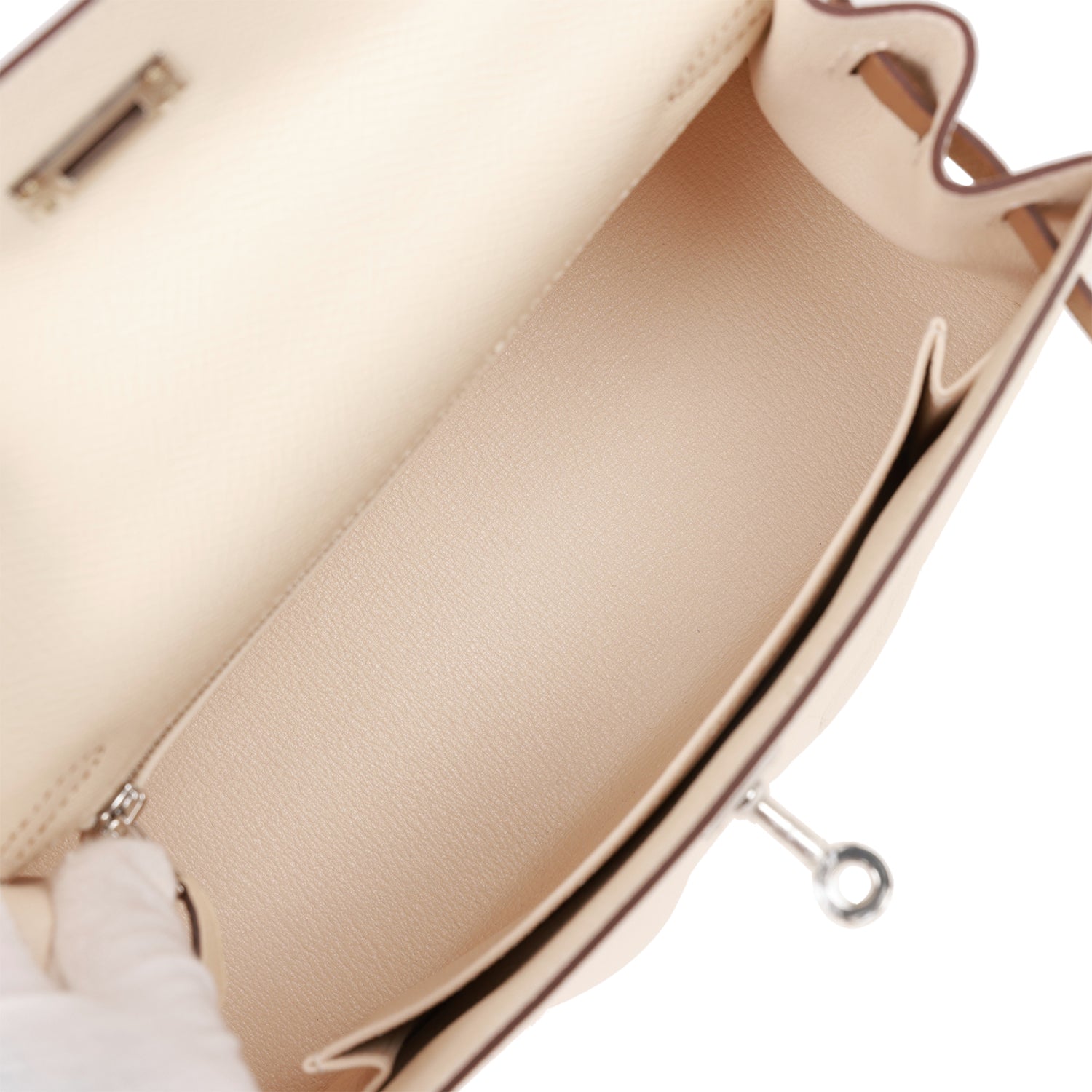 The interior is lined with Nata chevre leather and has one zip pocket with an Hermes engraved pull and one open pocket on the opposite side.