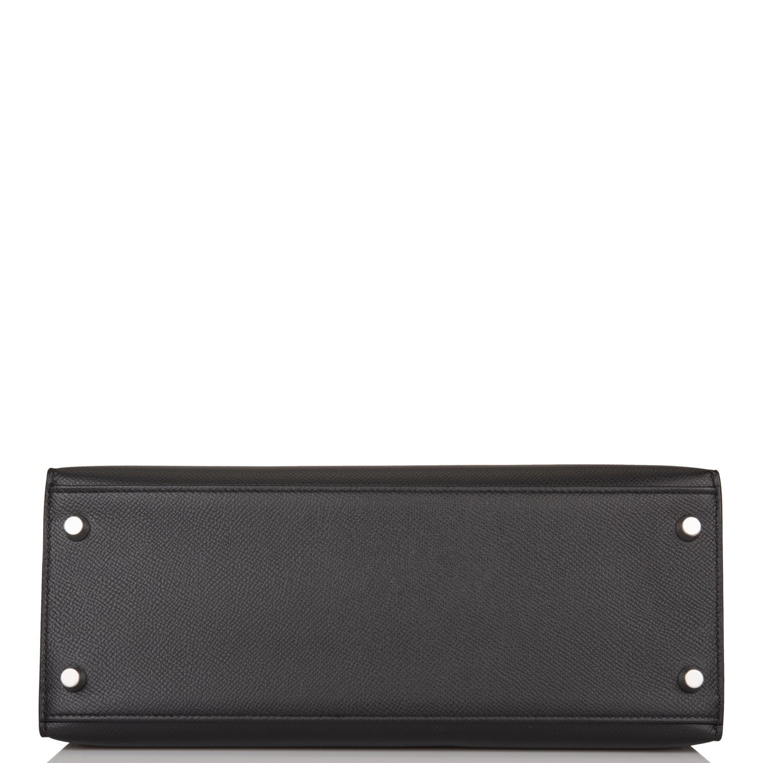 This Kelly Sellier is of black epsom leather with palladium hardware and has tonal stitching, a front toggle closure, a clochette with lock and two keys, a single rolled handle and an optional shoulder strap.