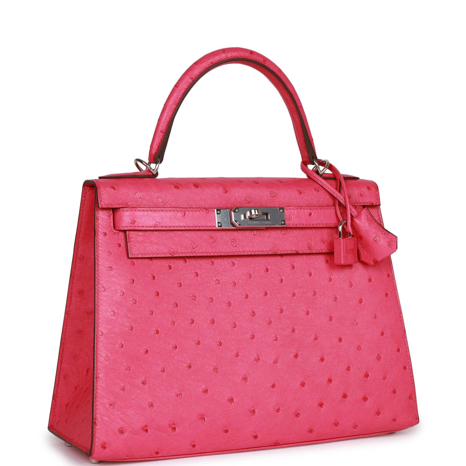 Hermes Kelly 28 Sellier Rose Tyrien Ostrich Palladium Hardware