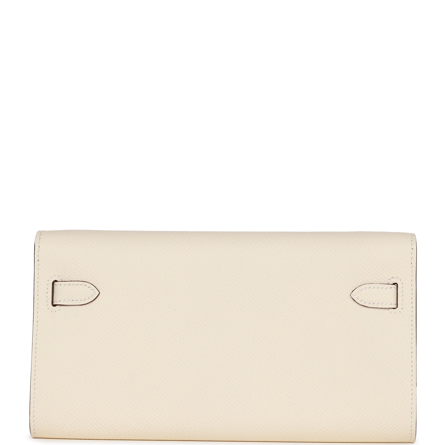 This Kelly Wallet To Go is in Nata epsom leather with gold hardware and has tonal stitching, two straps with front toggle closure and removable crossbody strap.