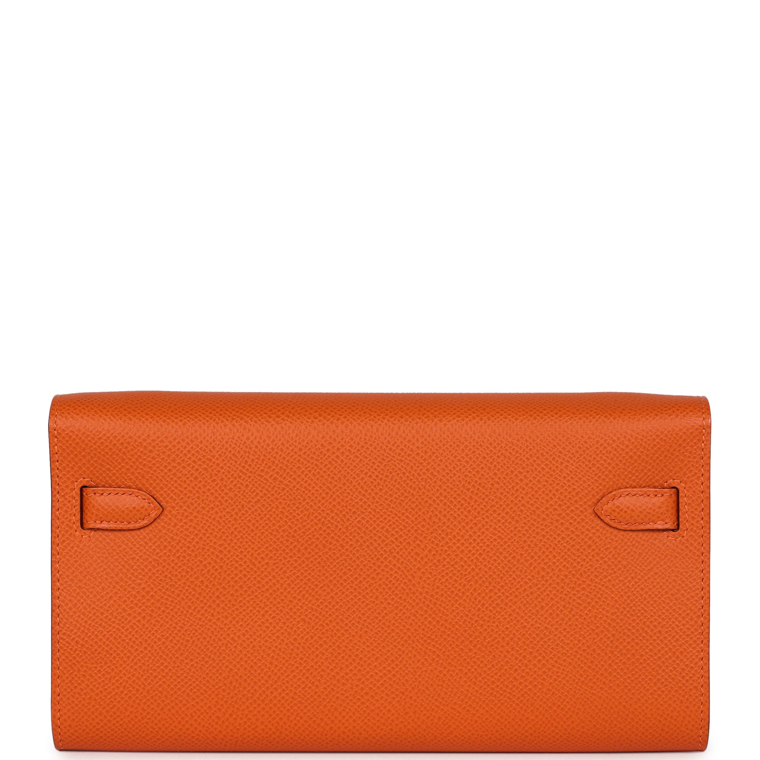 Kelly Wallet To Go is in Orange epsom leather with palladium hardware and has tonal stitching, two straps with front toggle closure and removable crossbody strap.