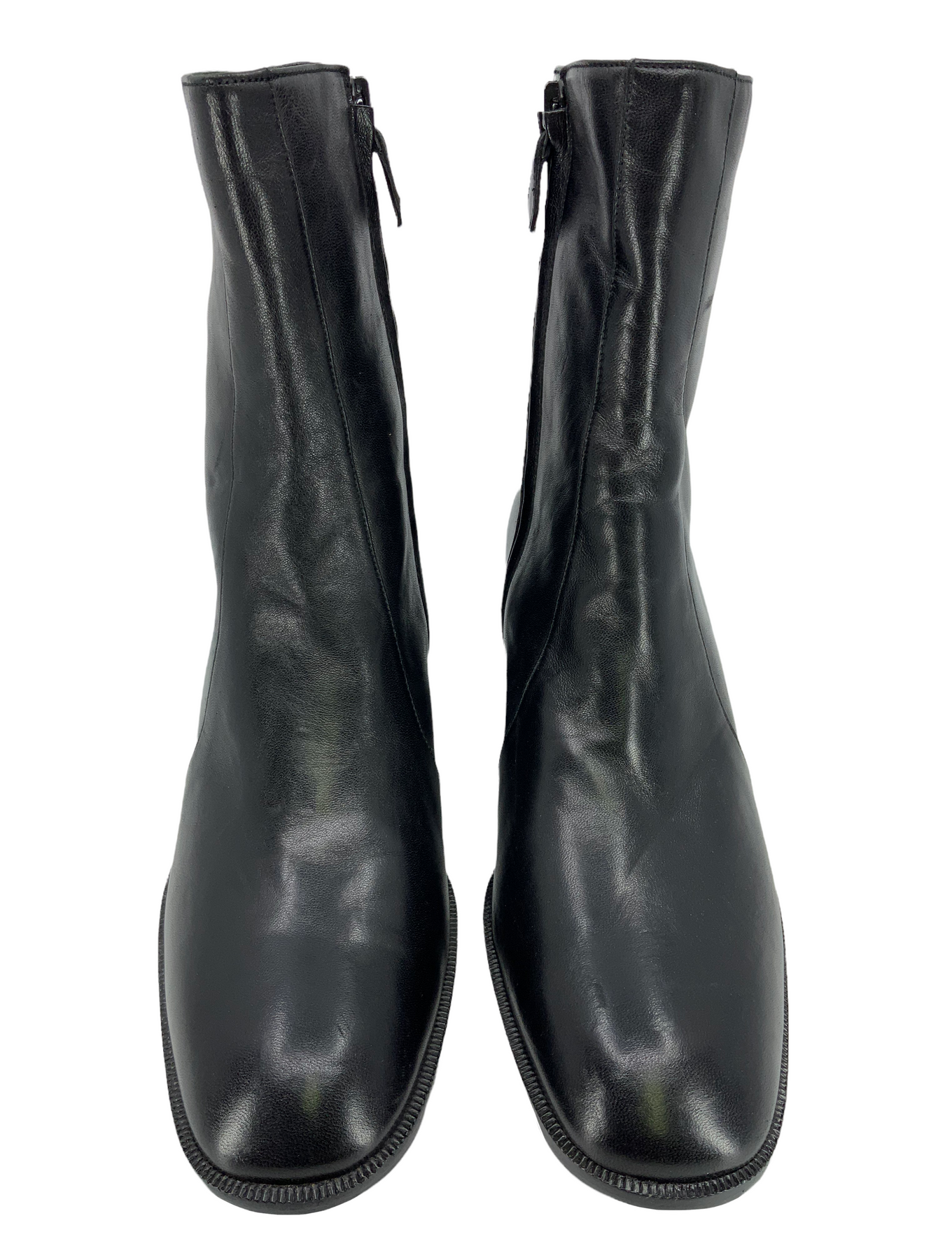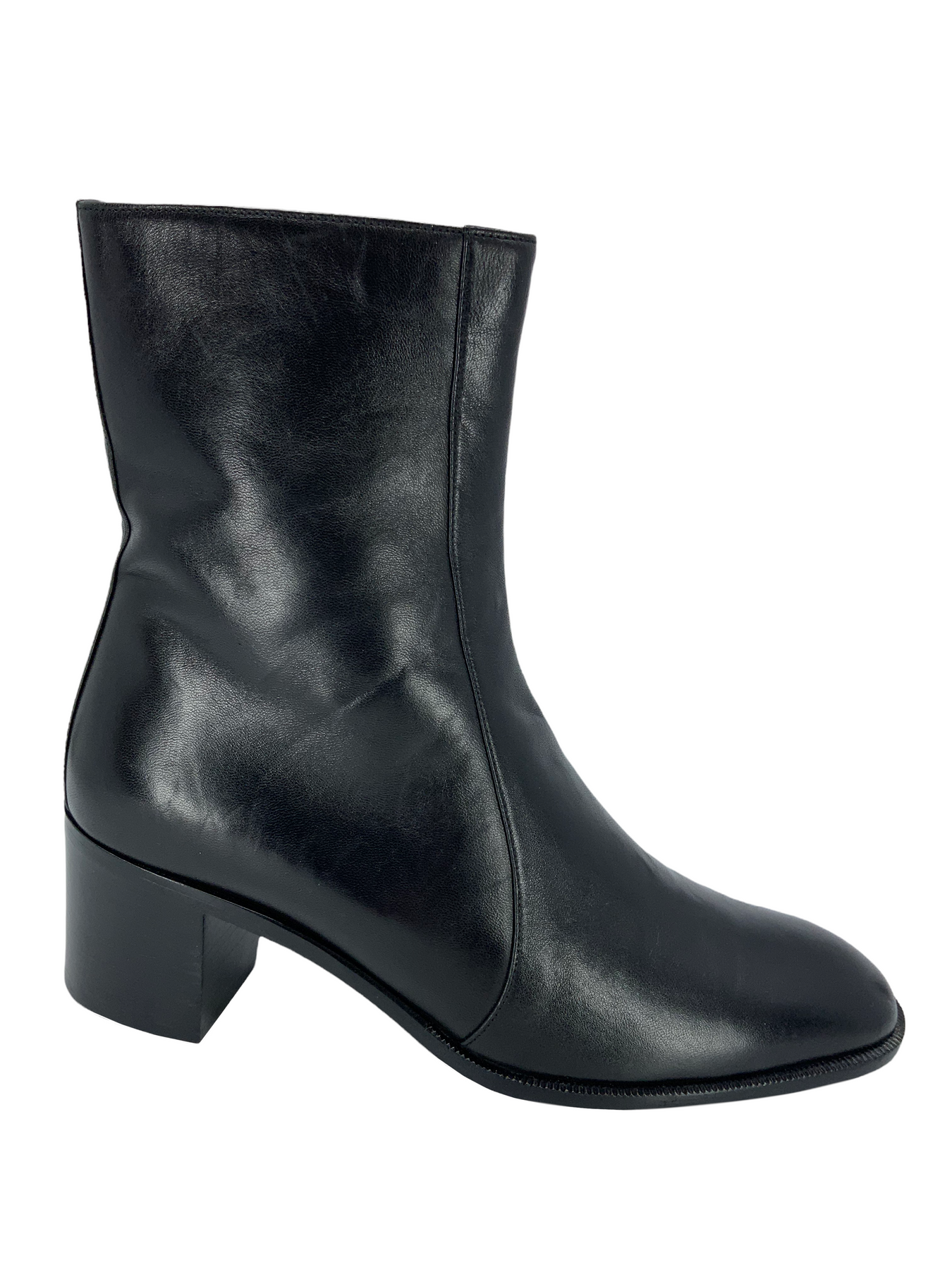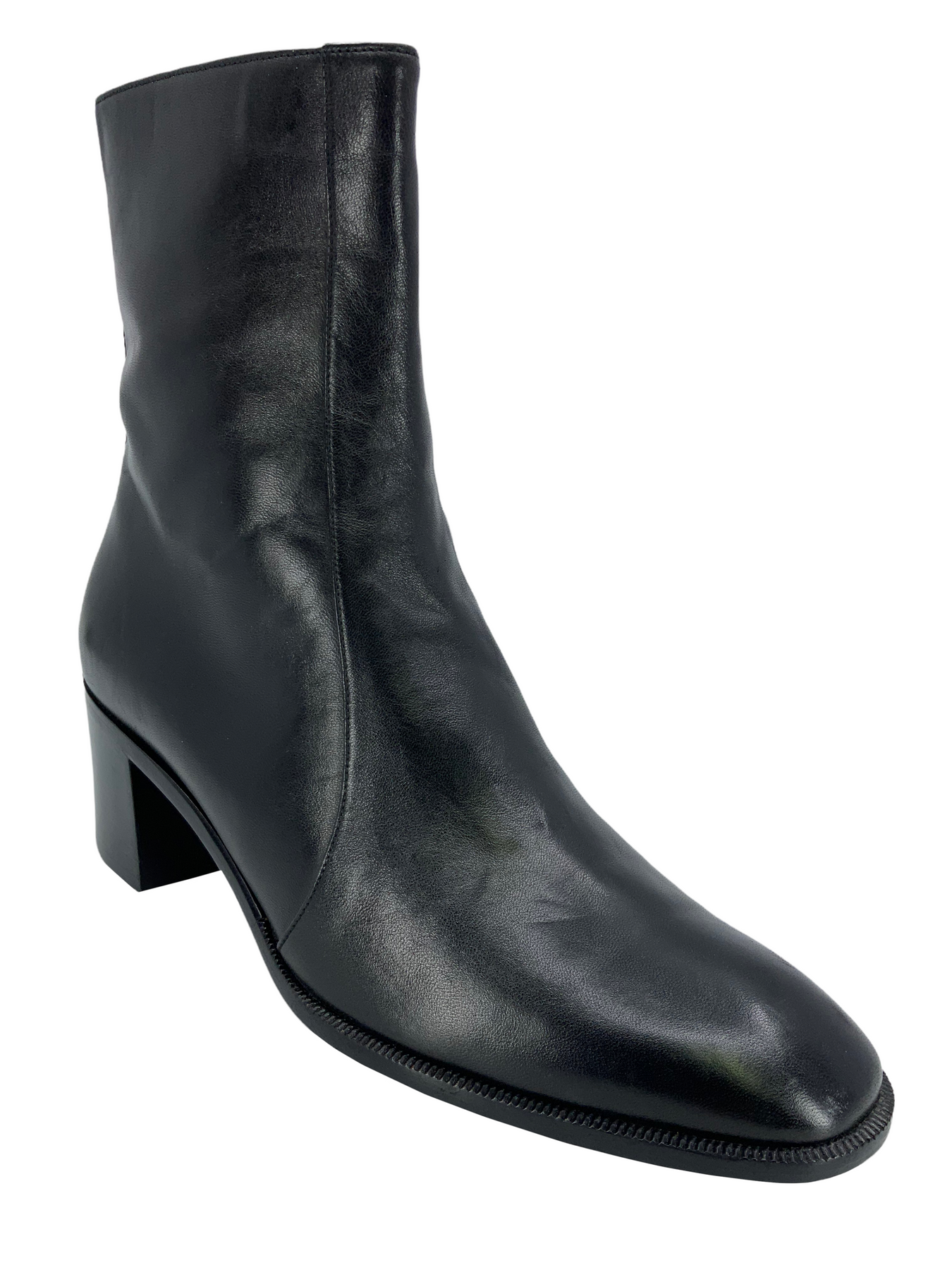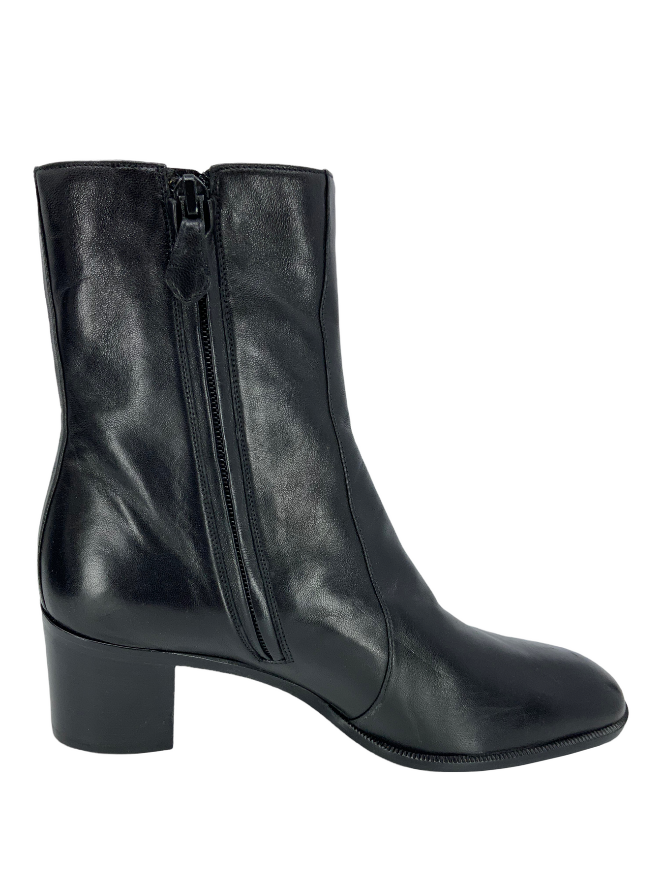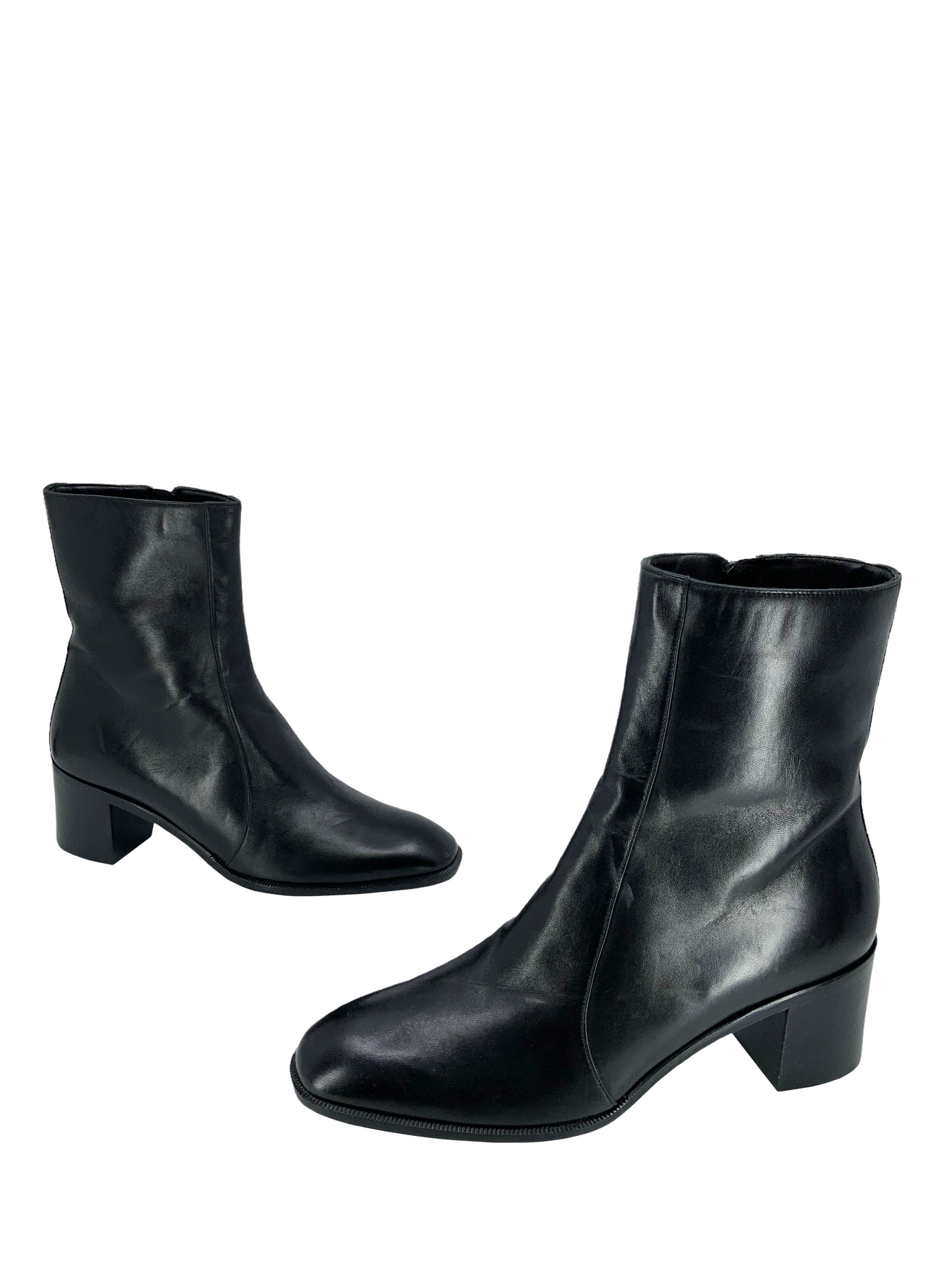Step out in style with this trendy pair of Hermes Leather Size Zip Ankle Boots Size 6.5 | 36.5 expertly crafted from supple black leather with a well-rounded toe and chunky block-heel. These boots feature side zipper closures and fully leather lined insoles.