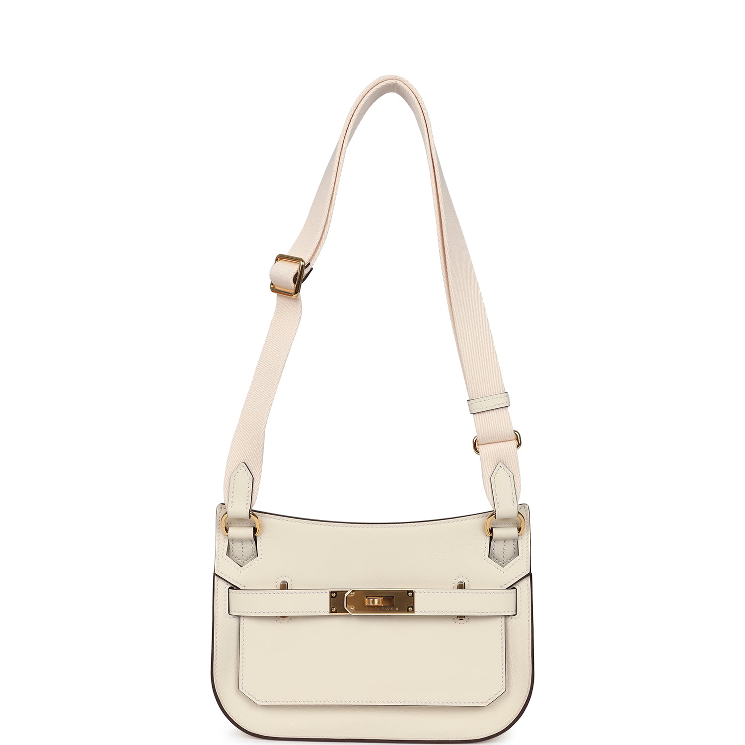 Mini Jypsiere bag is of Nata swift leather with gold hardware, tonal stitching, single flap, two pull straps, turnlock closure, and a flat wool shoulder strap.