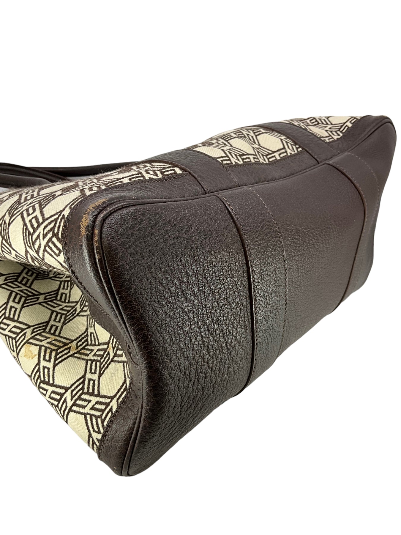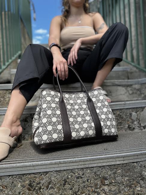 - Rolled leather top handles, 6'' drop