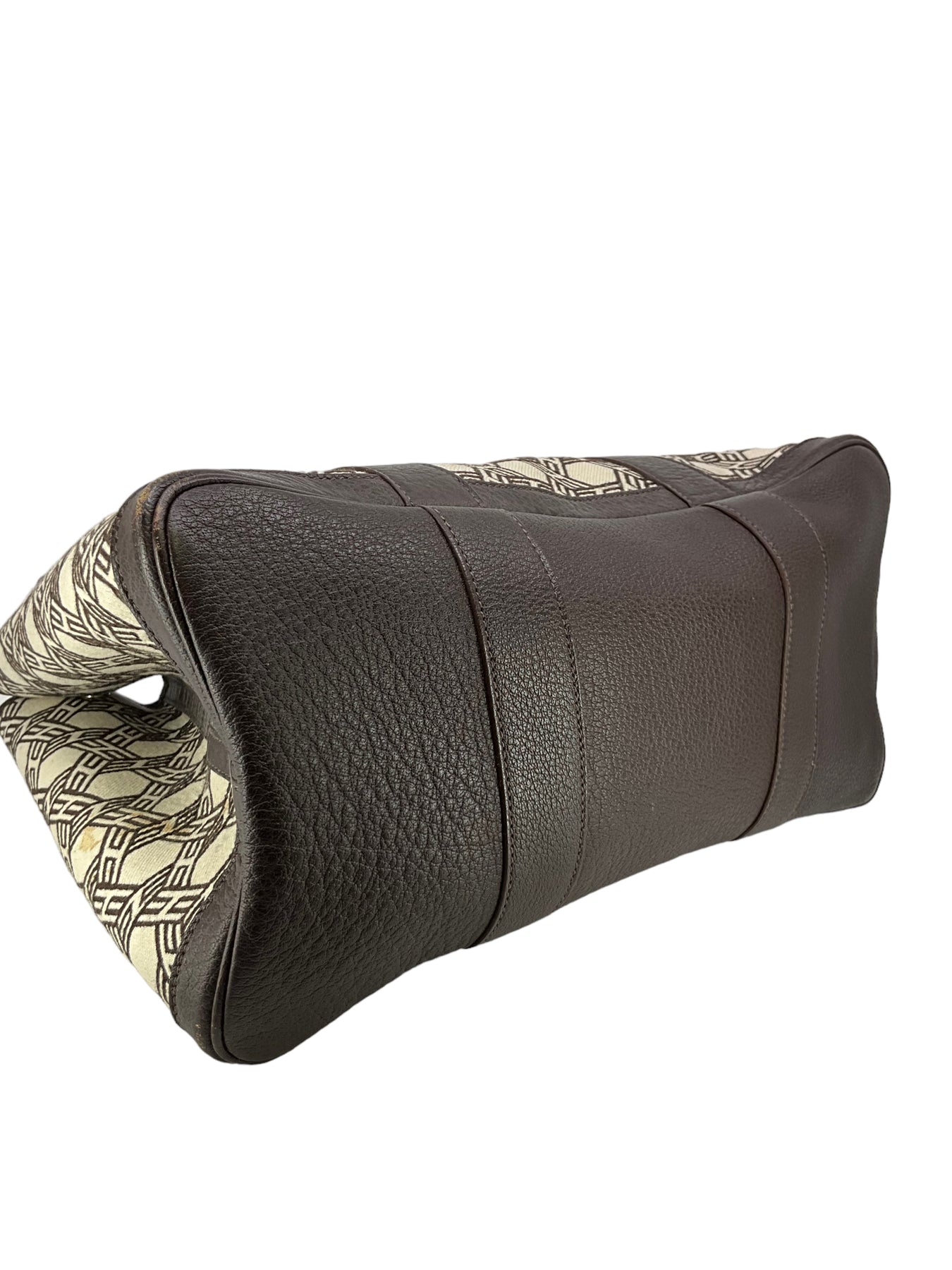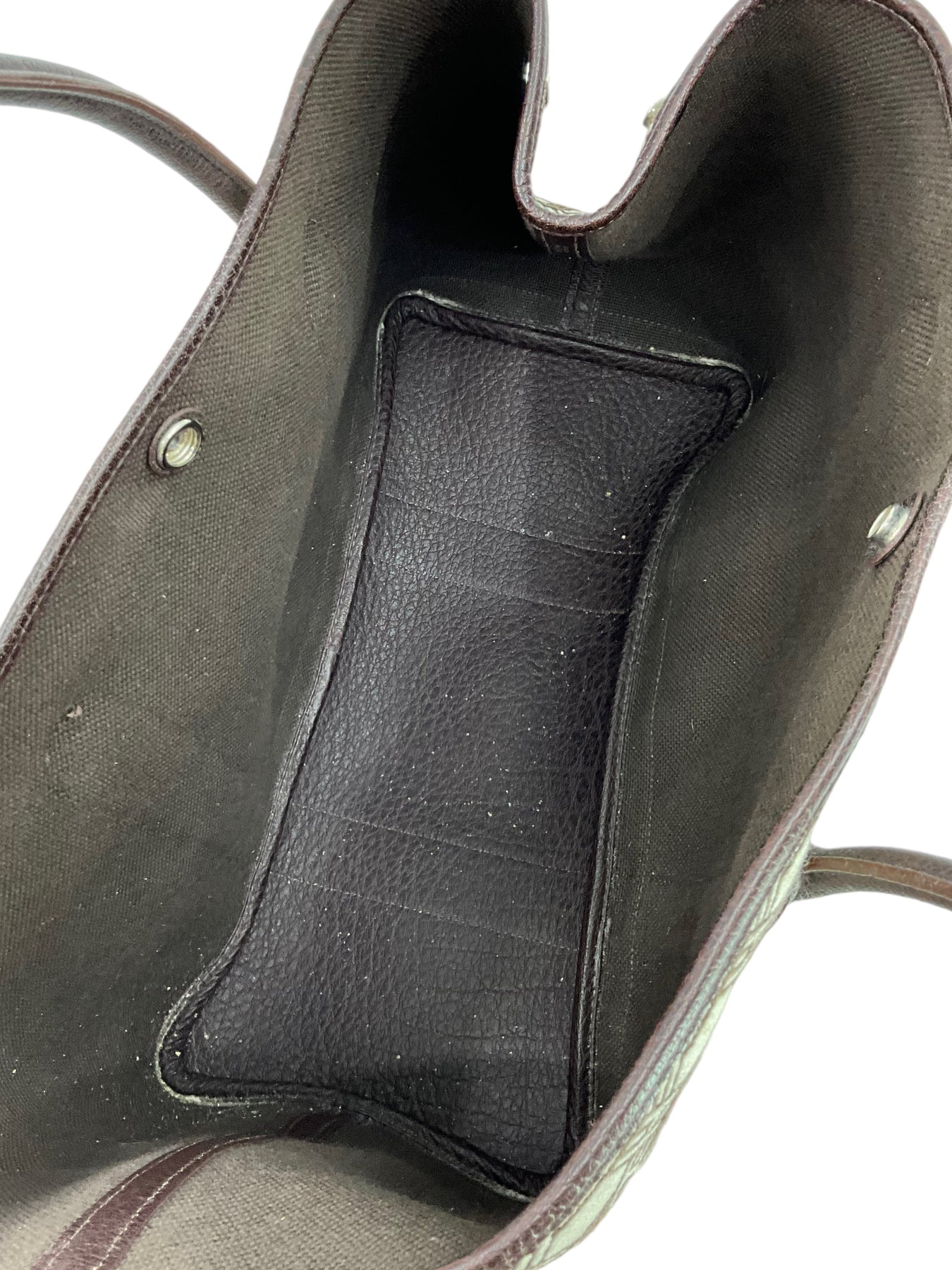 Condition: Very Good. The exterior is clean throughout the majority of the bag but the left side has an obvious stain. The handles have light creasing. The bottom base is clean but the edge corners displays scuffing. The palladium hardware has faint surface scratches. The interior has minor wear.