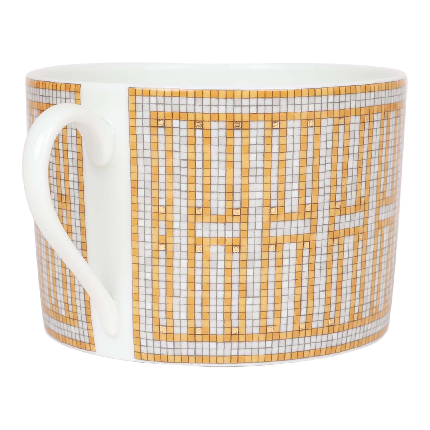 Hermes "Mosaique Au 24" Gold Porcelain Tea Cup and Saucer Set