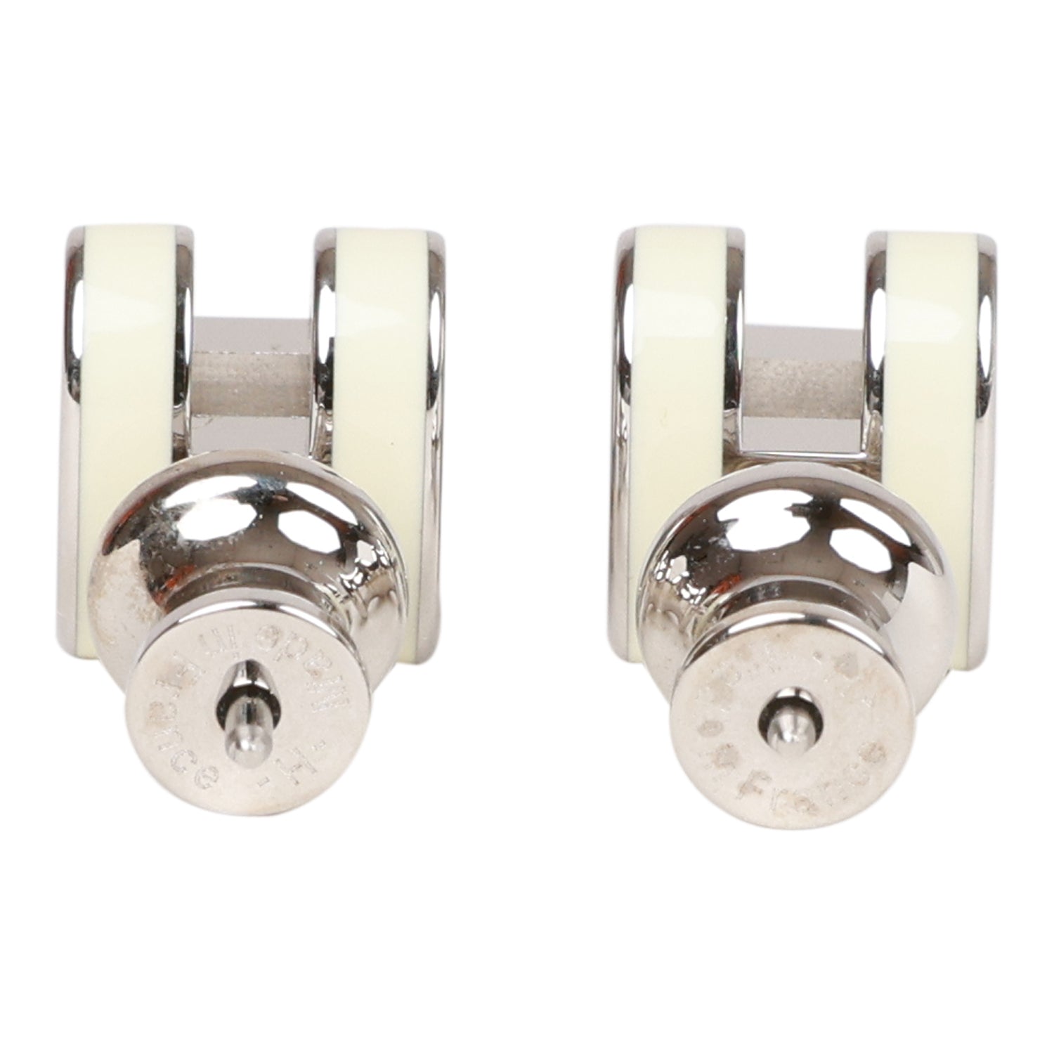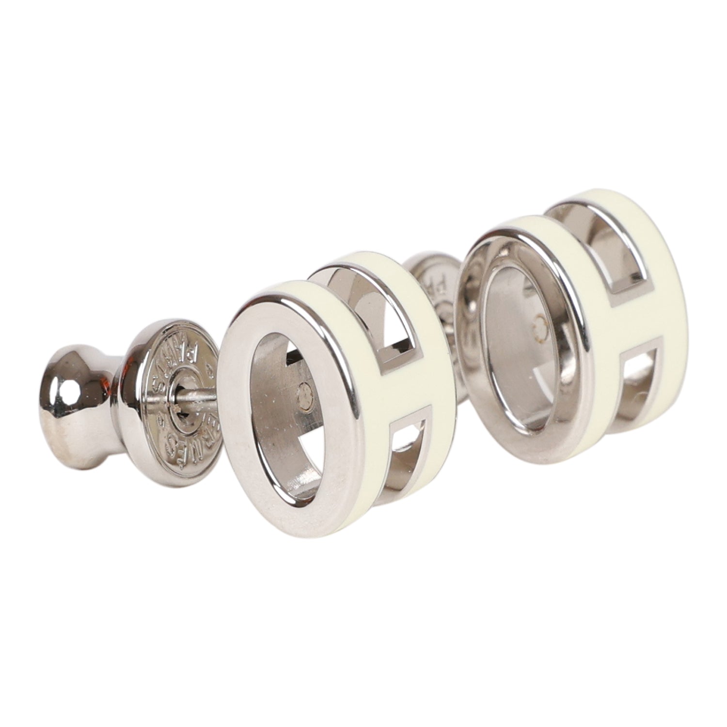 Hermes Mini Pop H earrings in Nata enamel with palladium plated hardware.